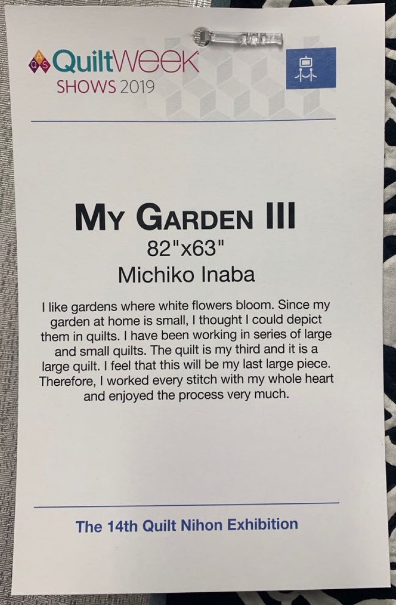 Please enjoy the first quilt from the exhibition by Michiko Inaba.