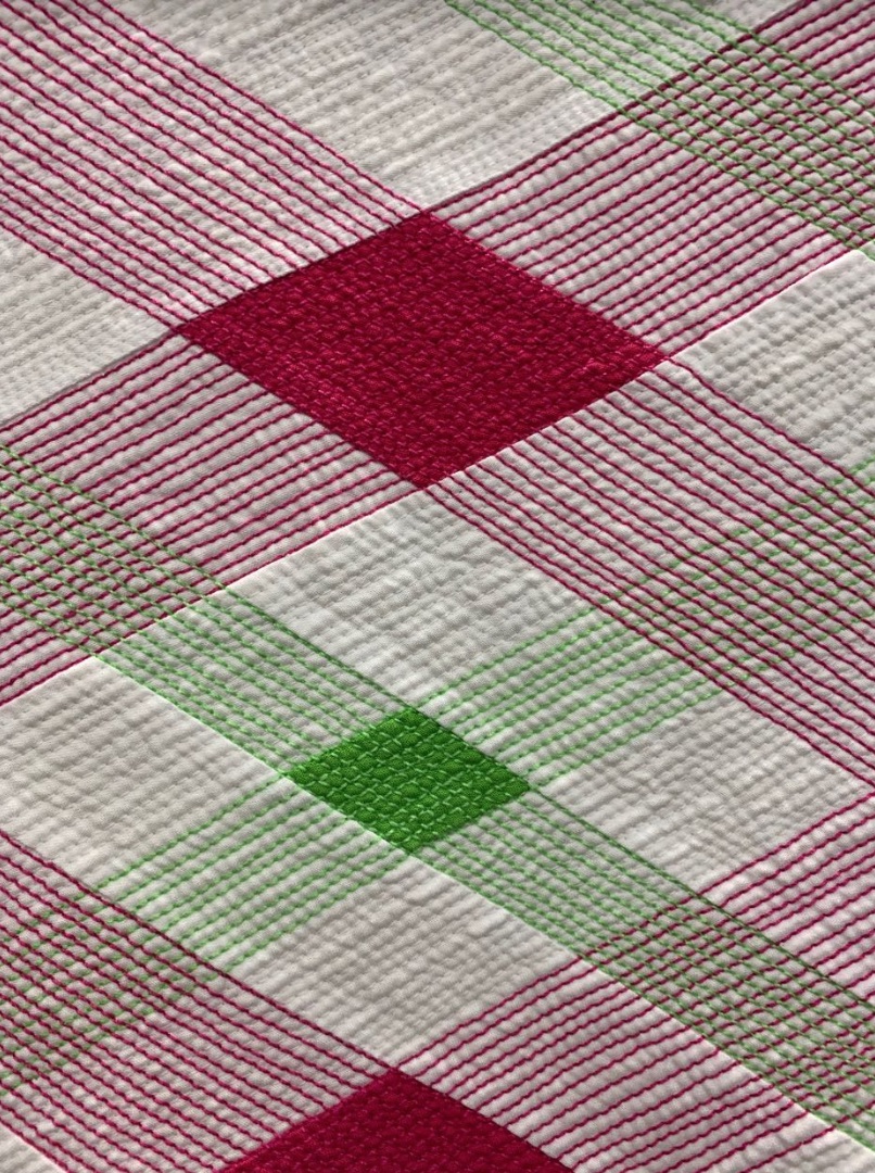 Around here, when we think of Convergence Quilts, we think of Ricky Tims, but with Cassandra Ireland Beaver's quilt, Complementary Convergence, we are off into a whole different world. We thought it might be a strip-pieced quilt, turns out we were wrong. There are only a few pieces of fabric, all the design was created by thread.