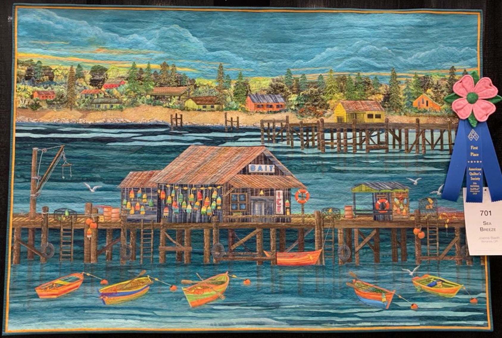 Joanne Baeth's quilt, Sea Breeze, just keeps on winning and it's not hard to see why. Using multiple techniques, fabulous colors, and exquisite workmanship, her quilt draws you in and makes you want to explore each detail.