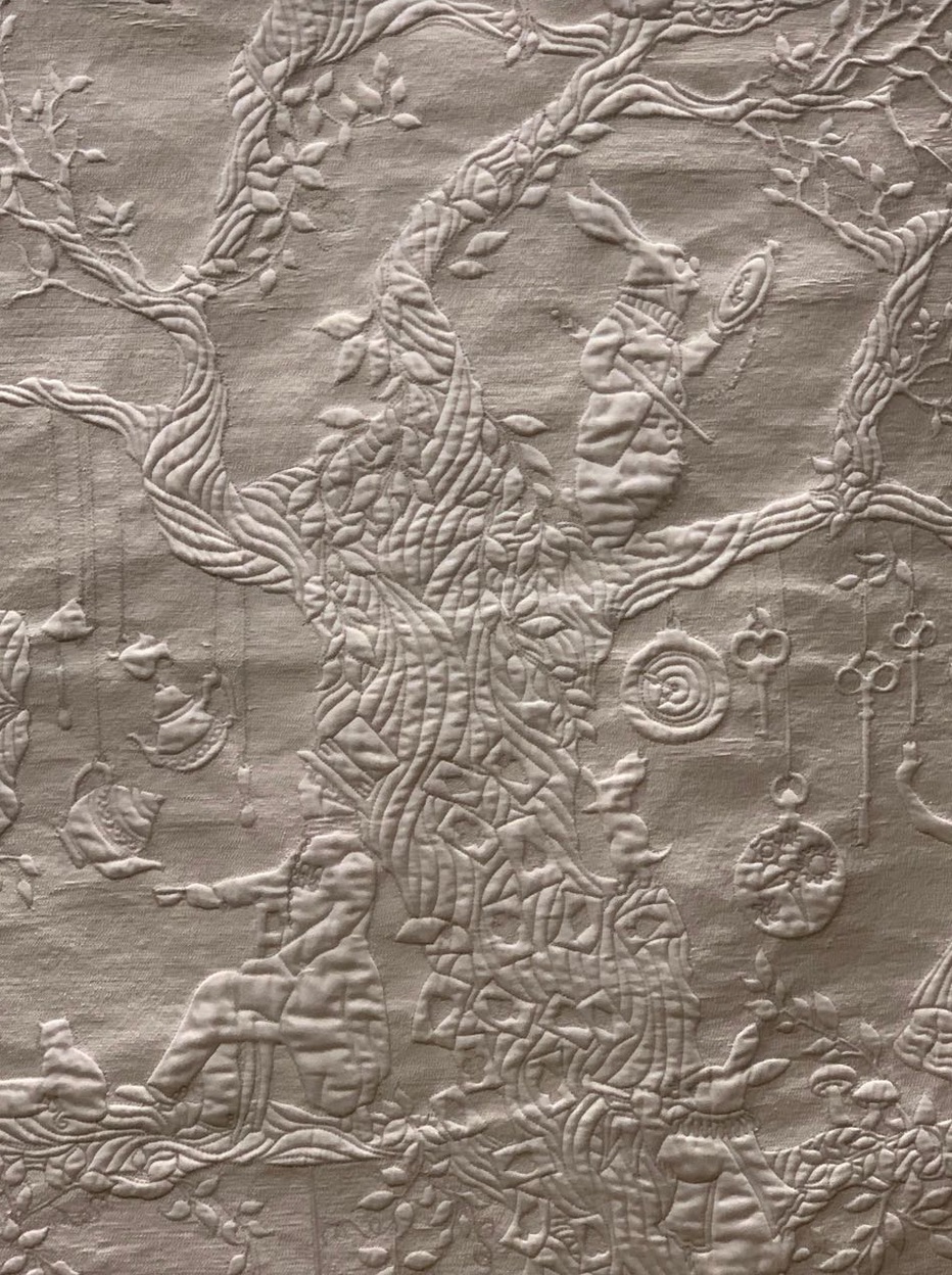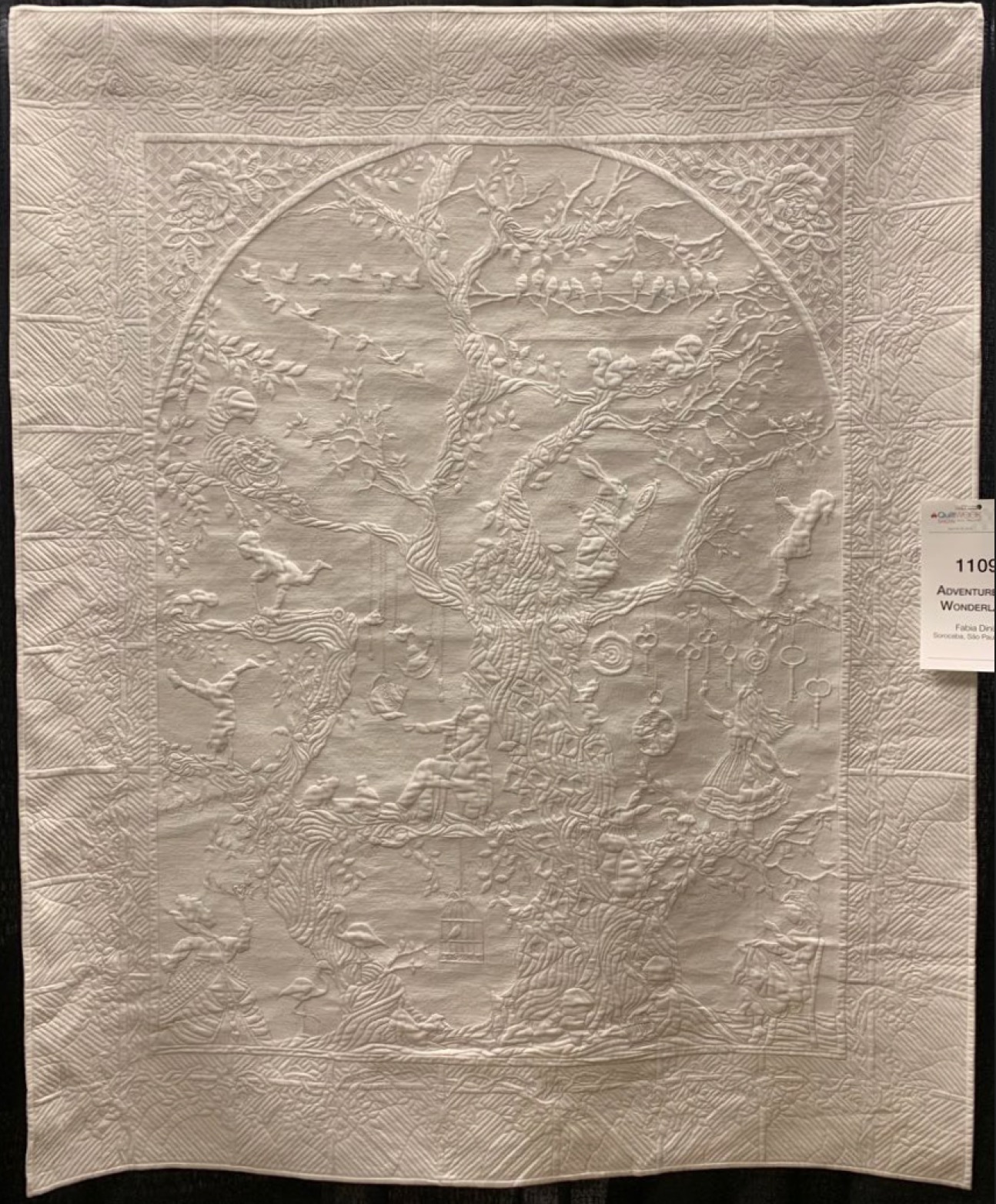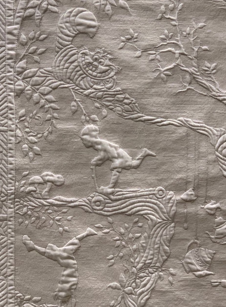 Fabia Diniz of Brazil created a whimsical masterpiece with her quilt, Adventures in Wonderland. It is a wholecloth quilt that Fabia "thread sketched" to create images from the beloved Lewis Carroll classic. Take a look and see if you can find your favorite characters.