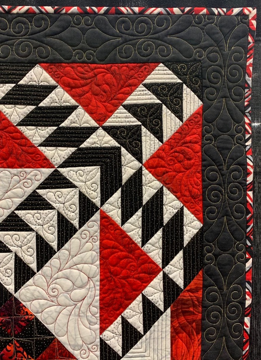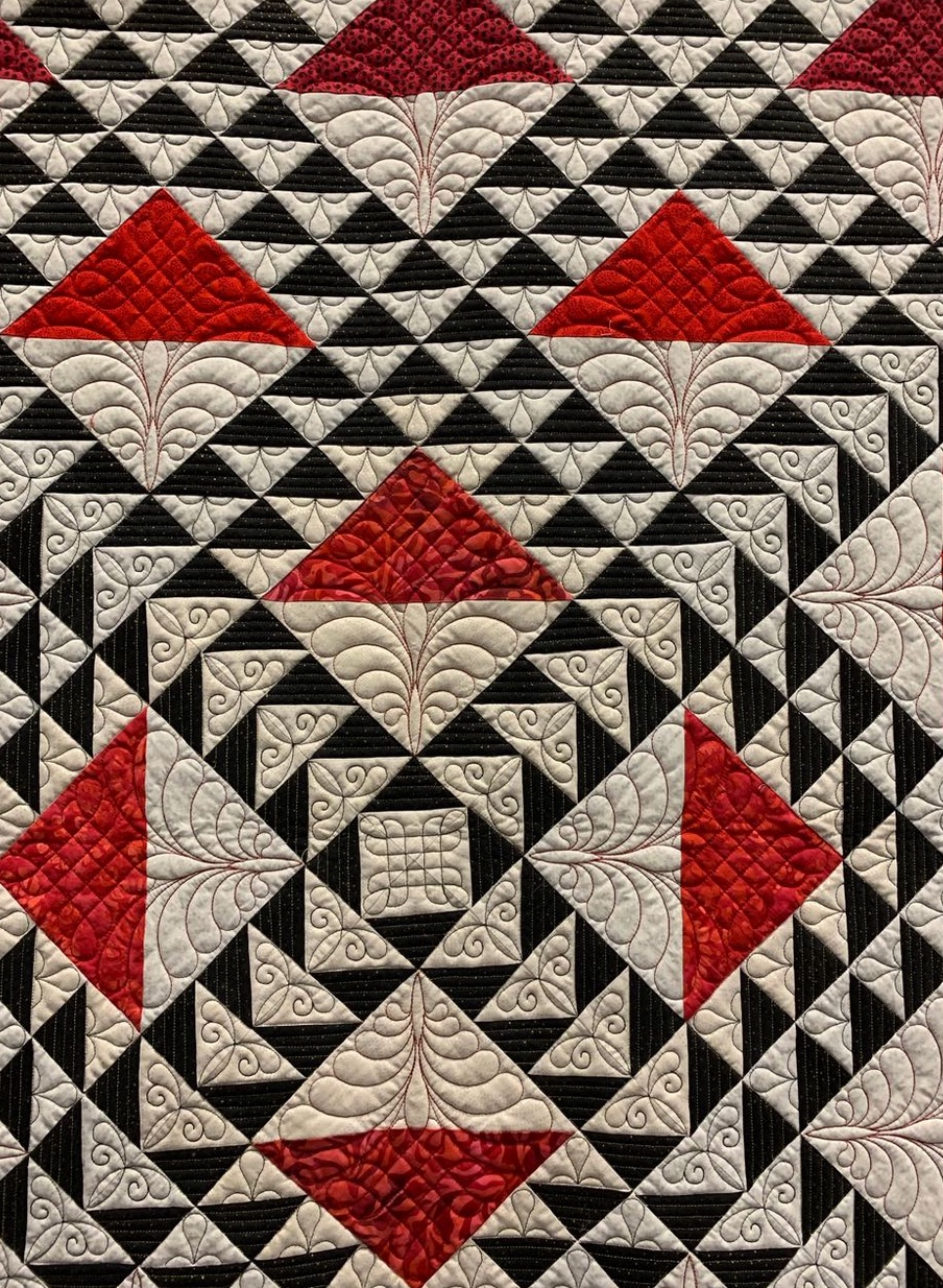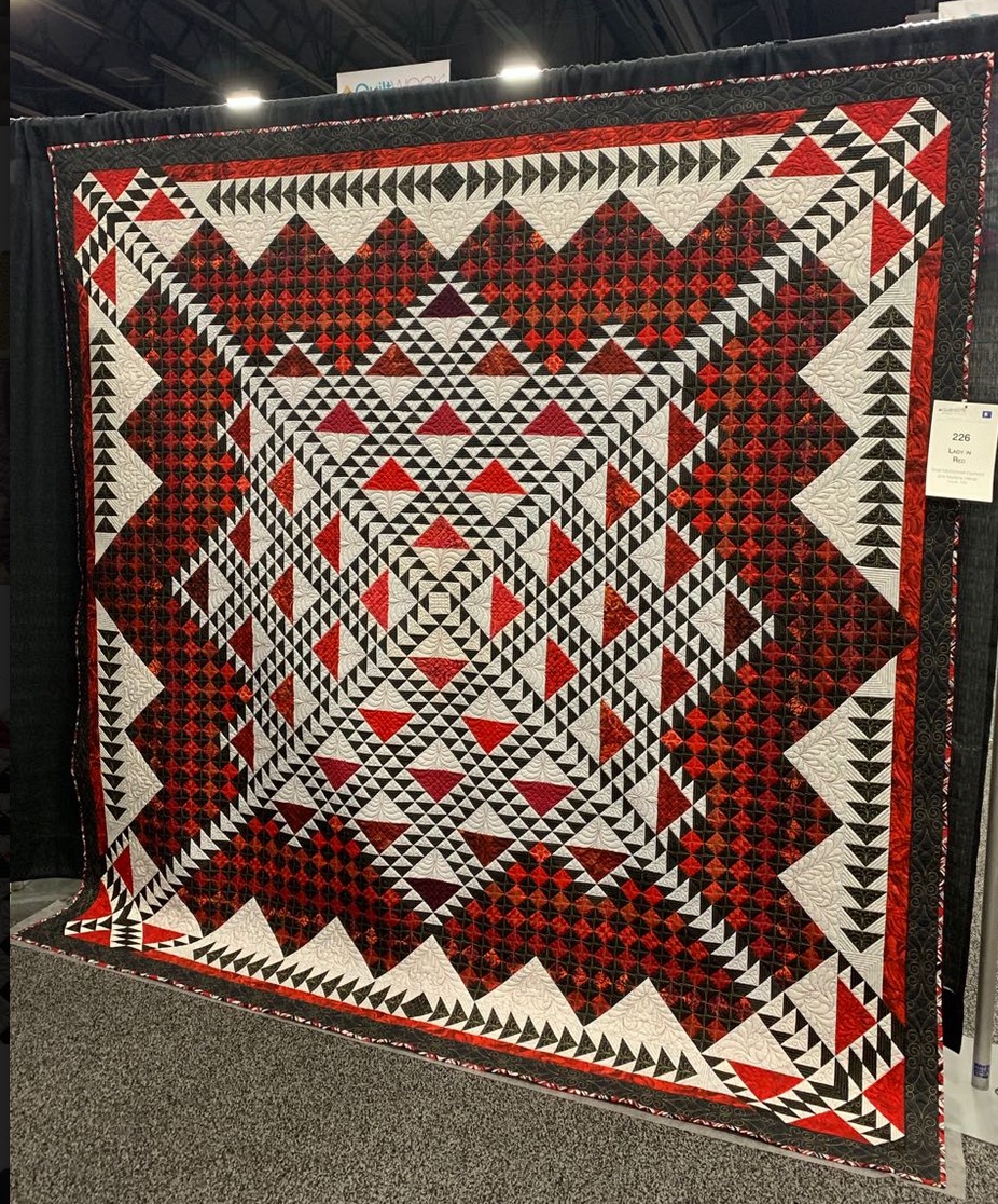 Lady in Red is based on the Lady of 10,000 Lakes pattern by Claudia Clark Myers...do you think there are 10,000 half-square triangles? It was exhibited at AQS QuiltWeek Paducah Spring 2019.