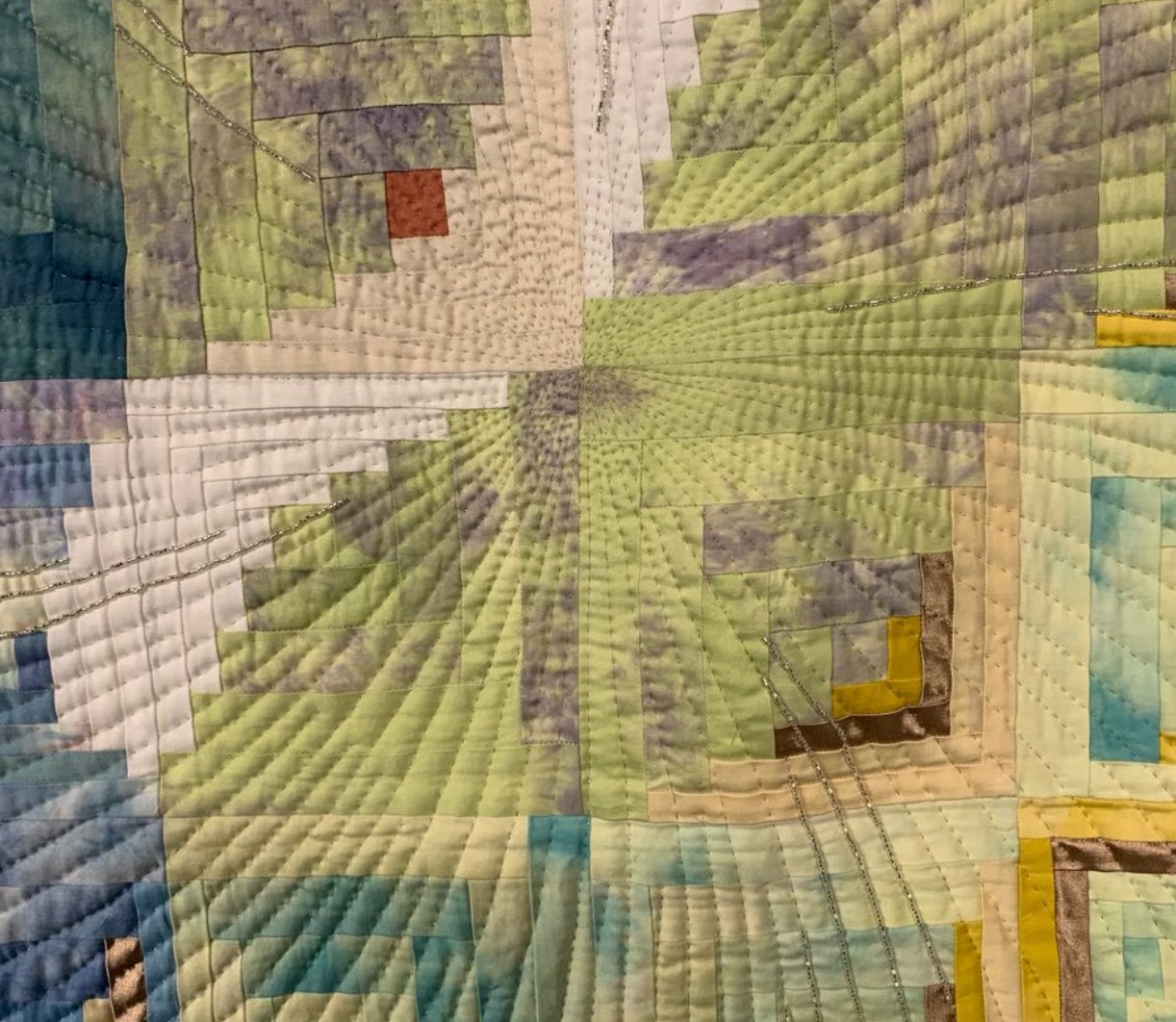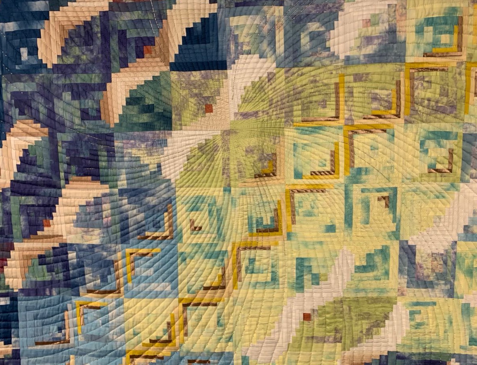 Capt'n John --"This exhibit was a constant surprise to me. With every quilt you had to get closer to realize what amazing work was done. I loved the birds flying...then I realized that this is a log cabin quilt!...then I saw the creative quilting design (on a log cabin?)...then, hey wait -- is this embellished....?