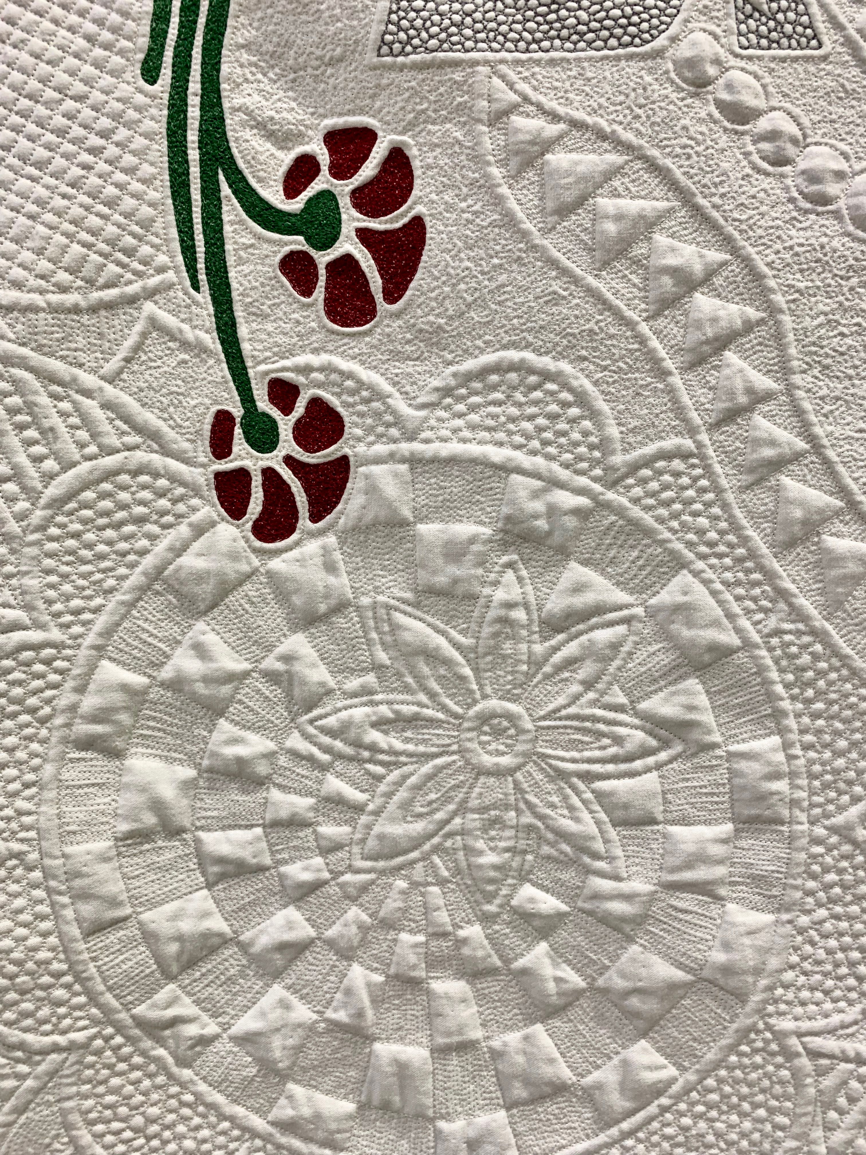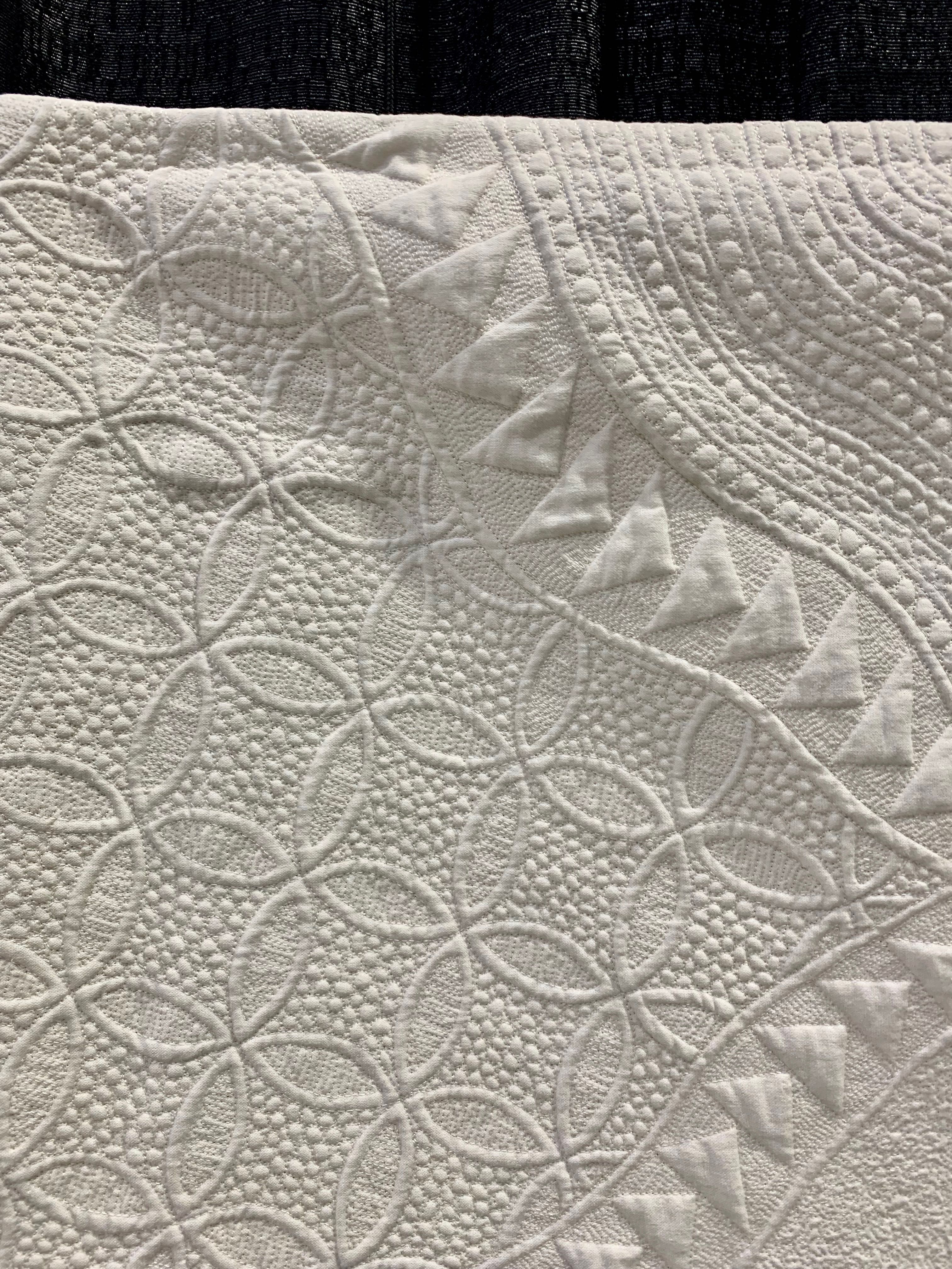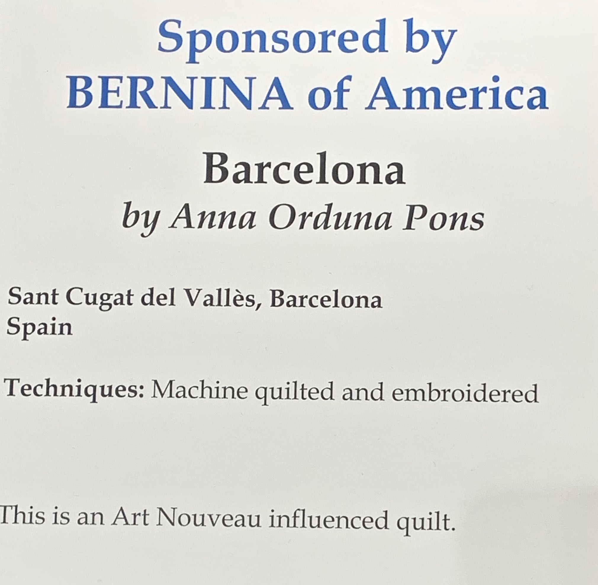 At Spring Quilt Market 2019 they displayed a group of past winning quilts. One of our favorites is the quilt below that has quilting that makes the quilt dance. By varying the tightness of the quilting, Anna Orduna Pons makes shapes and texture that create the design of the quilt. "Barcelona" won Merit Quilting - Stationary Machine in Houston 2018 sponsored by BERNINA.