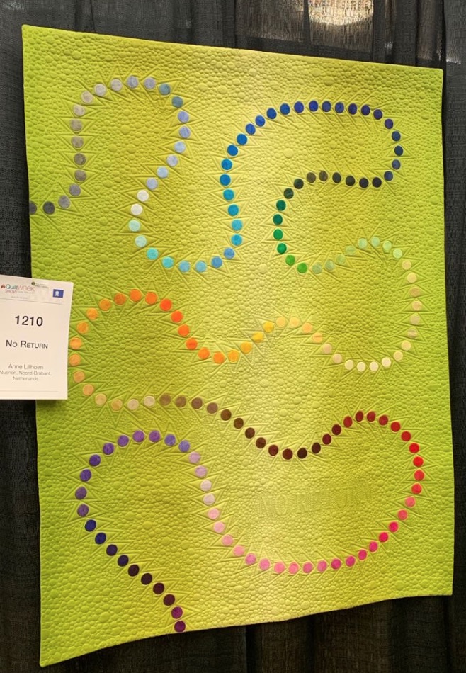 No Return was on exhibit at AQS QuiltWeek Paducah Spring 2019 and also won 2nd Place - Wall Quilts - 1st Entry in an AQS Lancaster Quilt Contest.