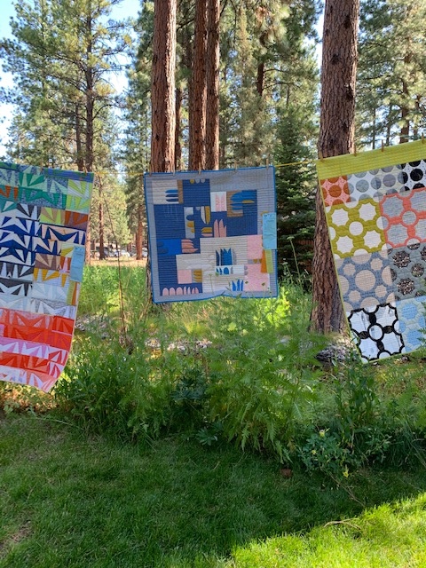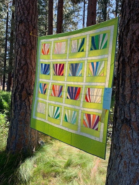 If you were lucky enough to view the Sisters Outdoor Quilt Show and decided to stay an extra day, you were in for a treat! The Sisters Outdoors Quilt Show Sunday is an up close introduction to one Quilter's Affair Instructor and their quilts. Held at the beautiful 5 Pines Lodge, it is a beautiful setting for a more intimate quilt show.