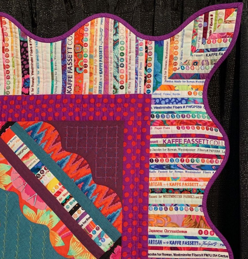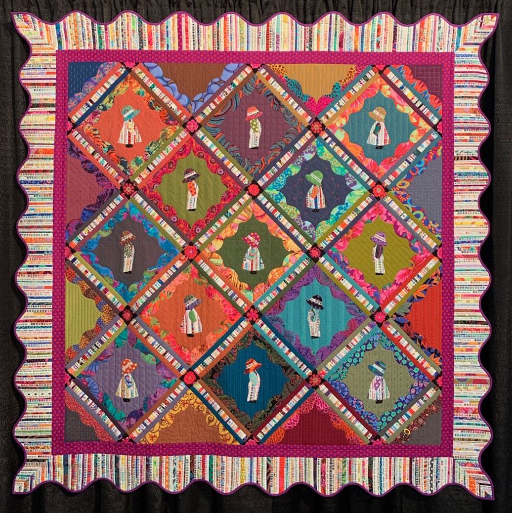 We love everything about Selvage Siblings by Mayleen Vinson. She challenged herself to make a Sunflower Sue and Overall Bill quilt from selvages. She topped it off with an amazing scalloped border, embroidery, and big stitch quilting. Did we say how much we love this quilt?