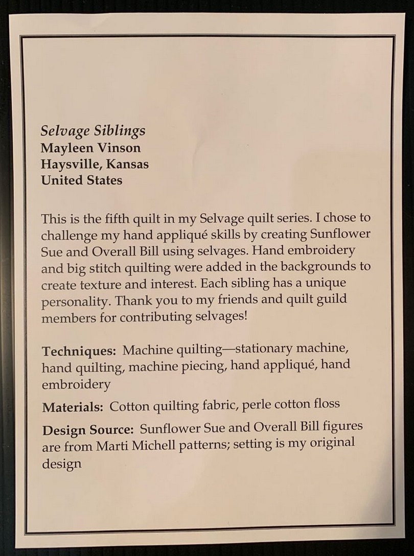 Selvage Siblings was on display at the Houston International Quilt Festival 2018.