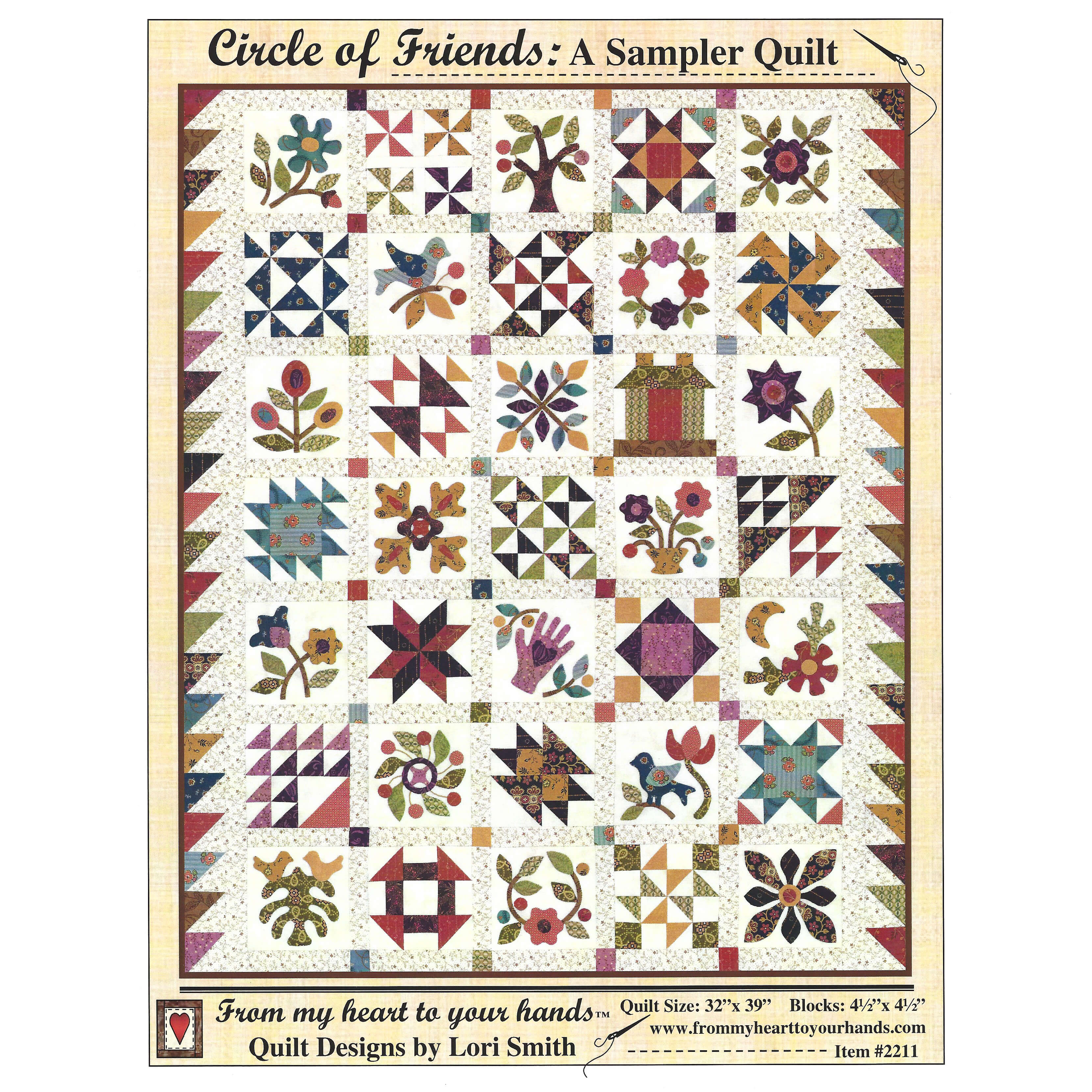 Circle of Friends incorporates appliquéd blocks with traditionally pieced bocks, making it a great project for both the beginner and the advanced appliqué afficianado.