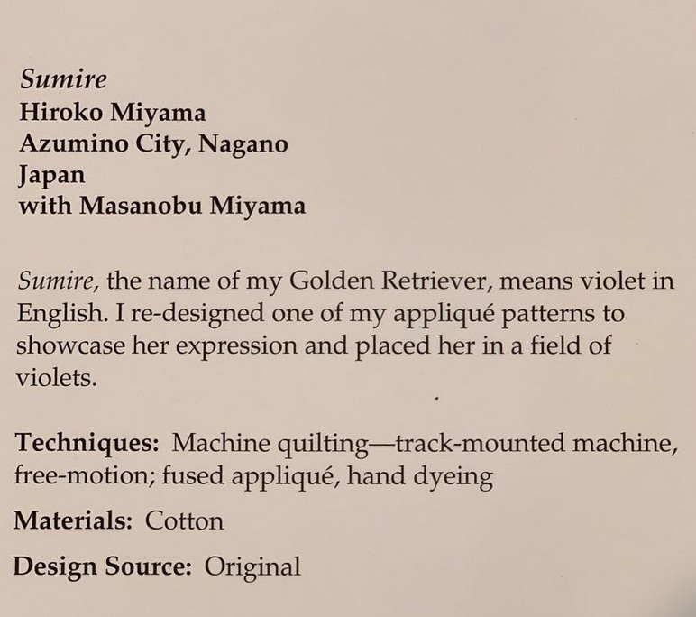 Hiroko's quilt was on display as part of the Animal Kingdom exhibit at the Houston International Quilt Festival 2018.