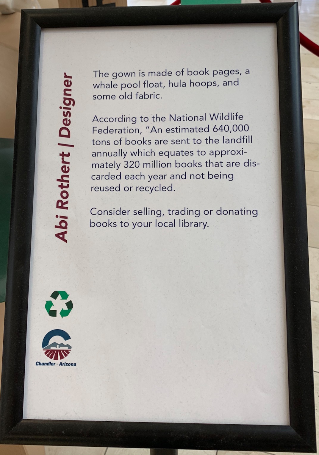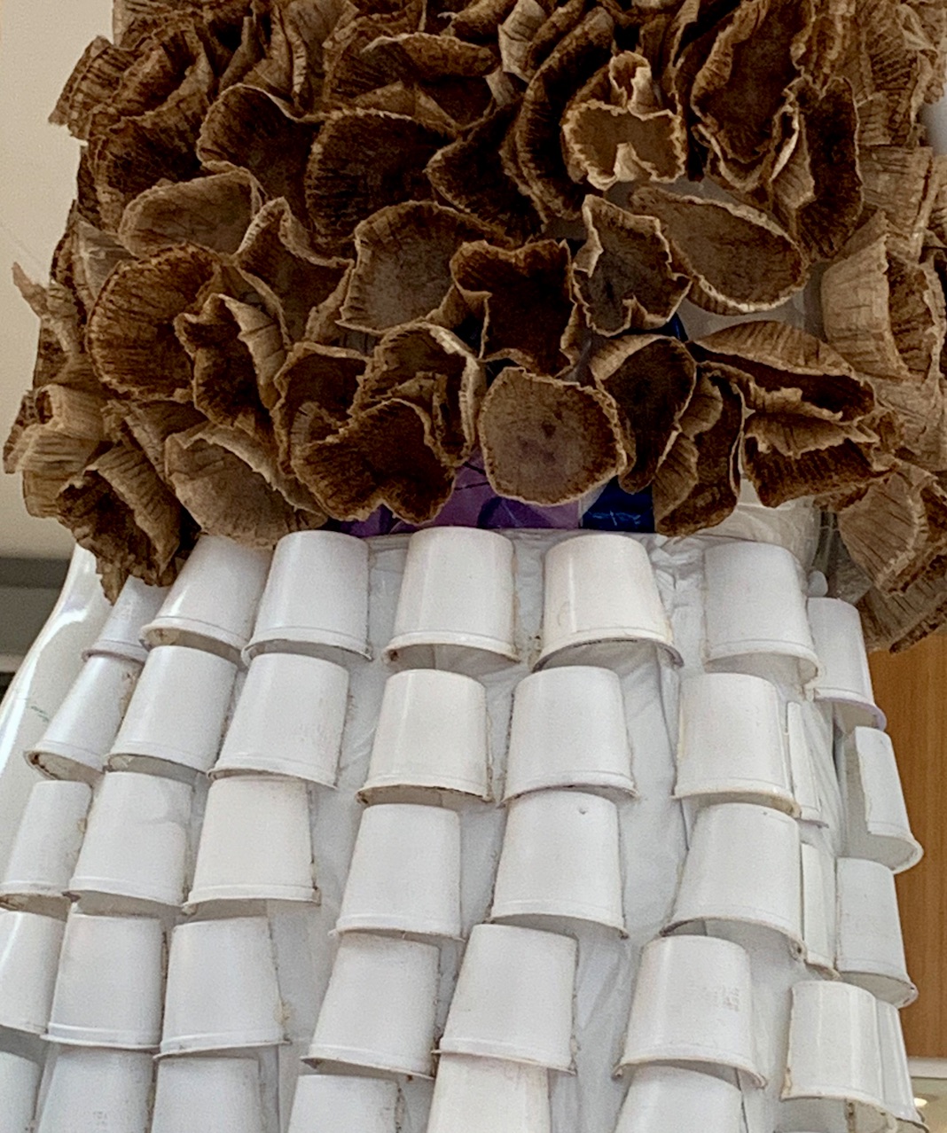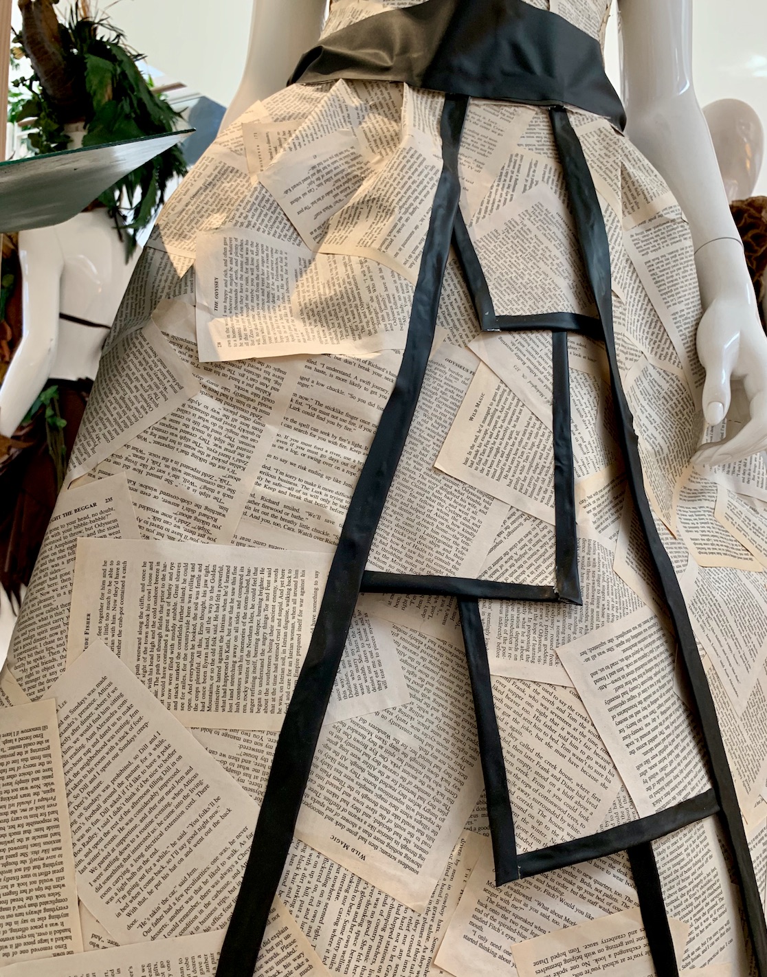 These designers did. We found this exhibit from the Chandler Trashion Fashion Show in a shopping mall in Chandler, AZ. The designers of these fashions range in age from 10 to adult and turned everything from coffee pods and newspapers, hula hoops and palm bark, into fashionable garments. Scroll down after the photos for a video about the fashion show.