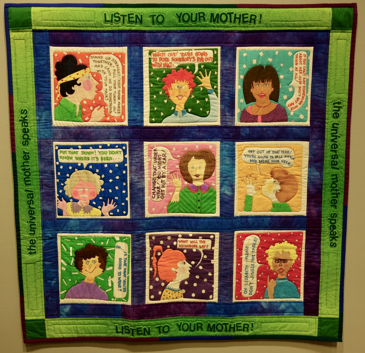 Listen to Your Mother was part of The California Art Quilt Revolution: From the Summer of Love to the New Millennium exhibit at the San Jose Museum of Quilts & Textiles in 2017. To see more of the exhibit, scroll passed the pictures.