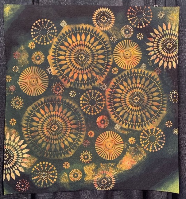 Sunflowers was on display in the Houston International Quilt Festival 2018 as part of the Surface Design exhibit.