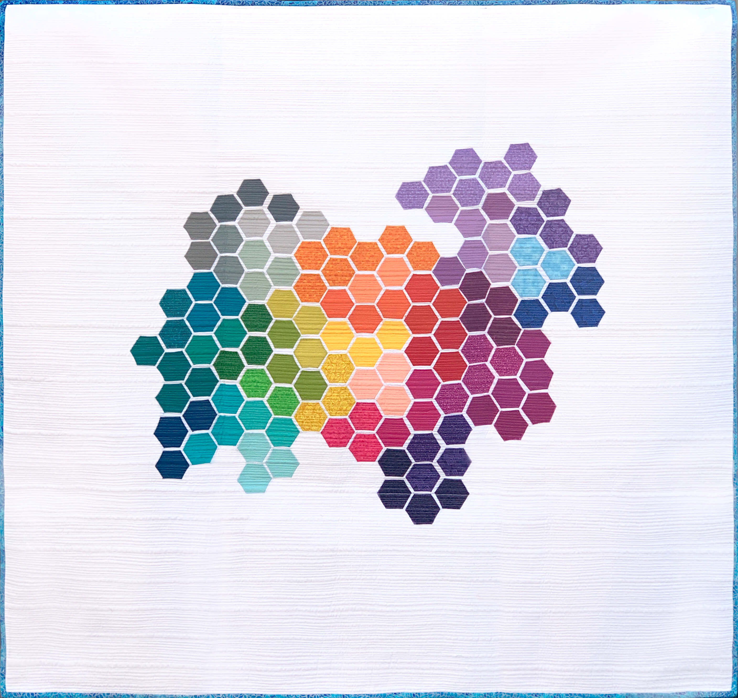 Quilter Shinae Farrar used our multicolor 80 wt. Quilters Select bobbin ring to full advantage when making this gorgeous modern hexie quilt!