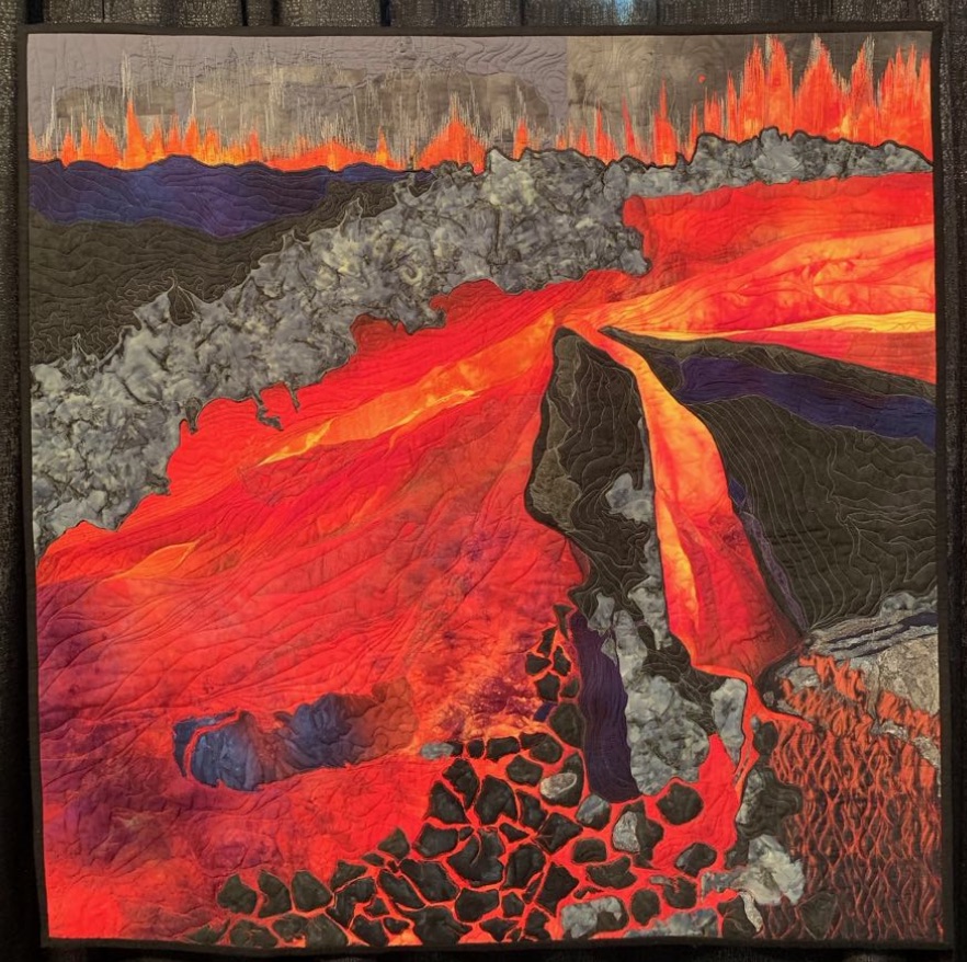 Marilyn Lone was inspired by the Kīlauea volcano to create her quilt, Lava. She knew she couldn't really get close, so she used her imagination to recreate the Lava bursting forth to create new land.