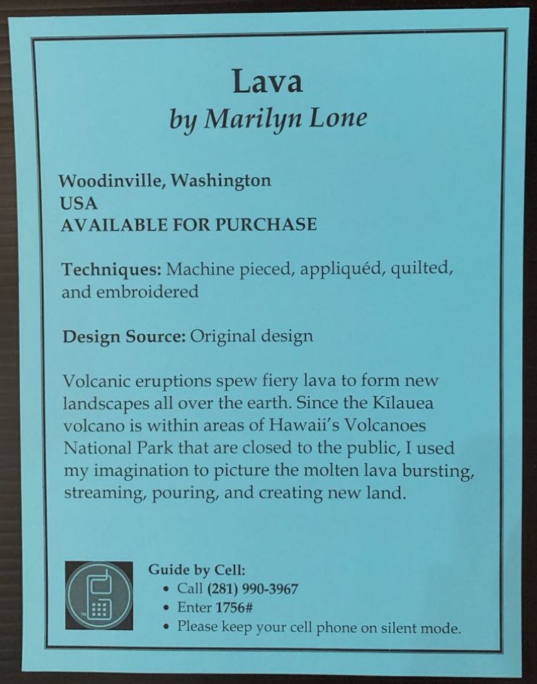 Lava was on display at the International Quilt Festival in Houston 2018 as part of the Landscape Quilts exhibit.