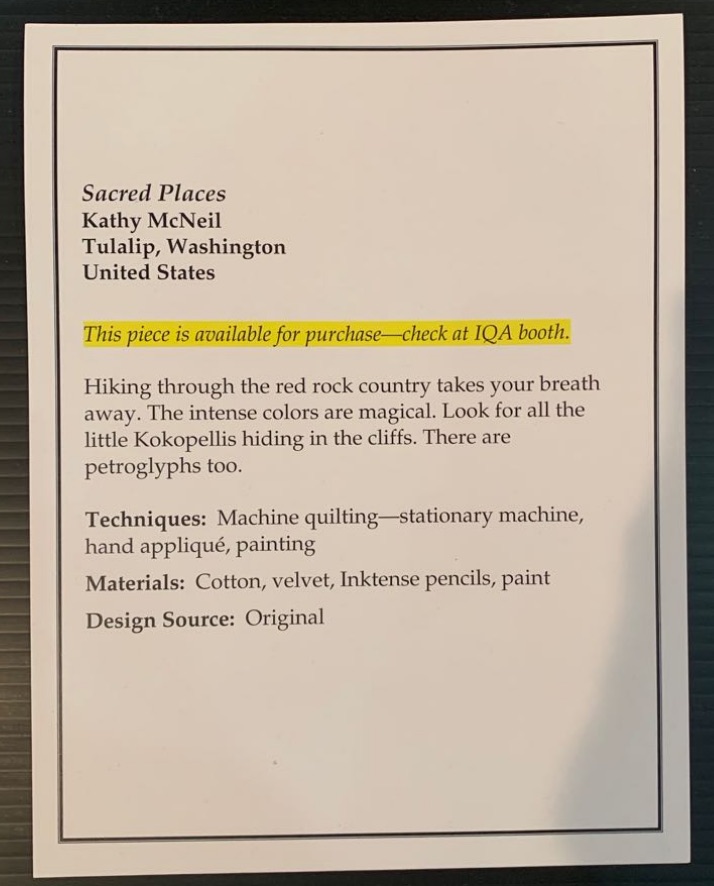 Sacred Places was on display in the Naturescape quilts category at the Houston International Quilt Festival 2018.