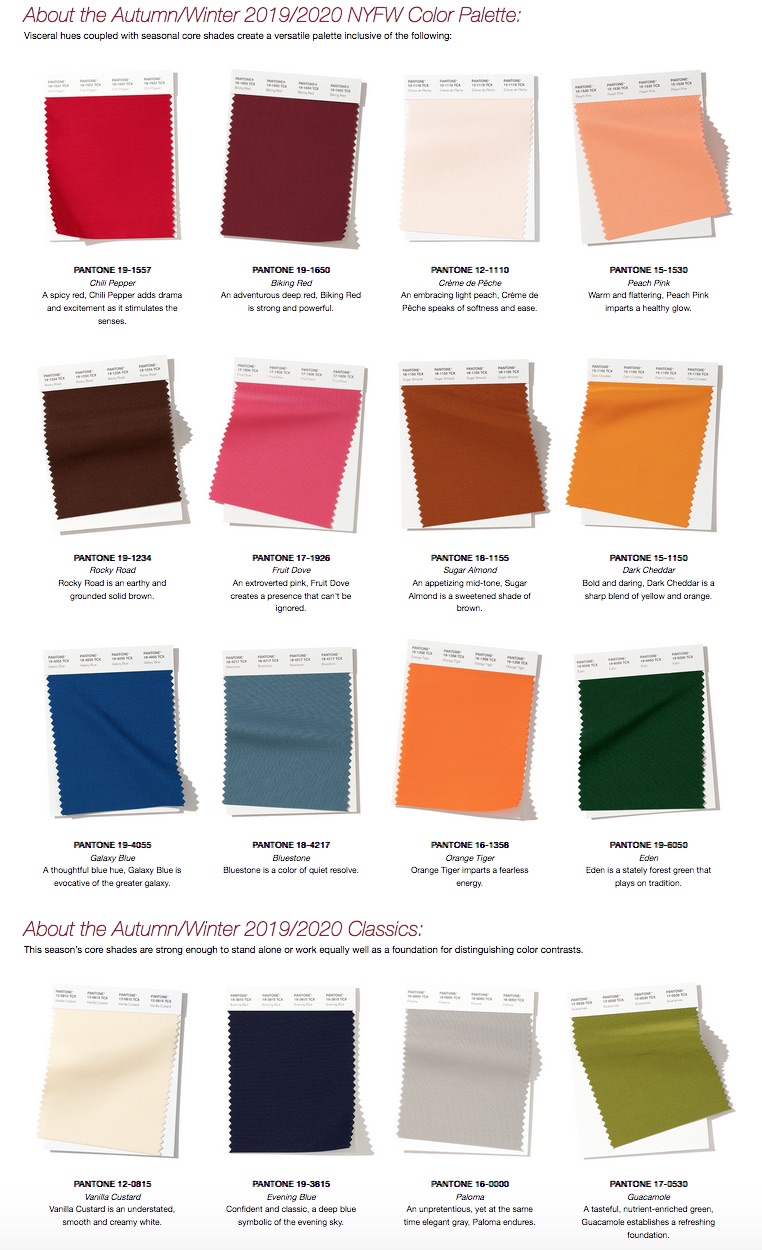 Did you know that every season PANTONE evaluates the colors shown by fashion designers in their shows during New York Fashion Week? They then use the information to create the PANTONE Fashion Color Trend Report, where they highlight the top colors in fashion for the upcoming season. Will you be wearing any of these colors this fall, or perhaps using them in your quilts?