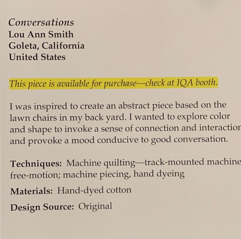 Conversations by Lou Ann Smith was part of the Abstract Large exhibit at the International Quilt Festival in Houston 2018.