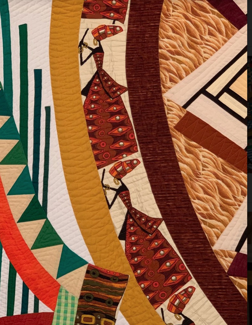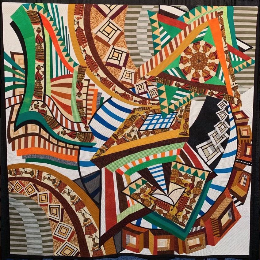 Combining interweaving log cabins which overlap in three dimensions, Miki Murakami has created what she calls a "strange space." We spent a lot of time in this space trying to figure out how she pieced it all together. We also enjoyed the "exotic" fabrics she used to create the quilt.