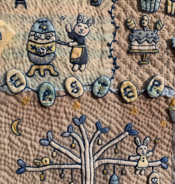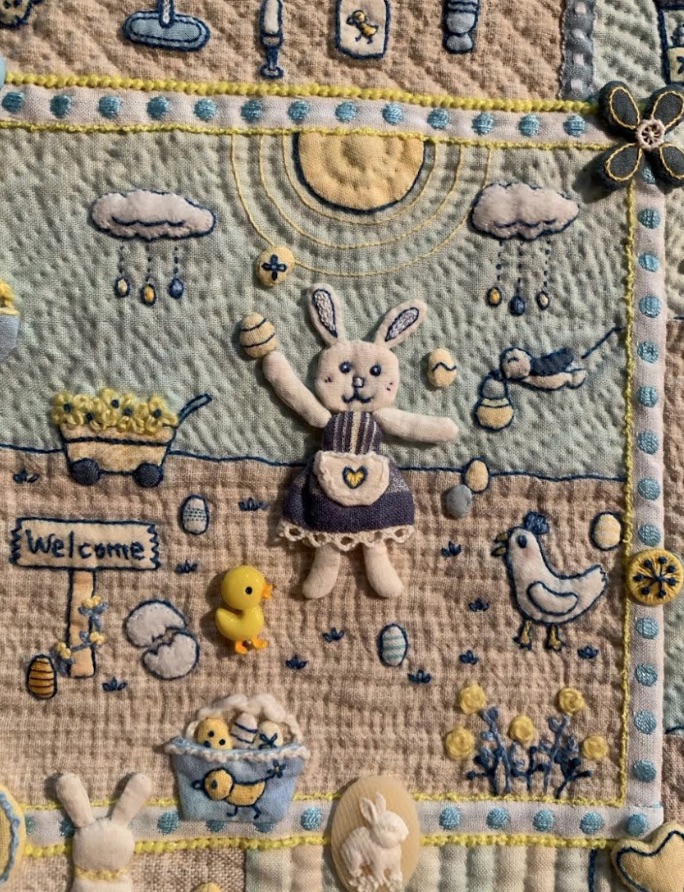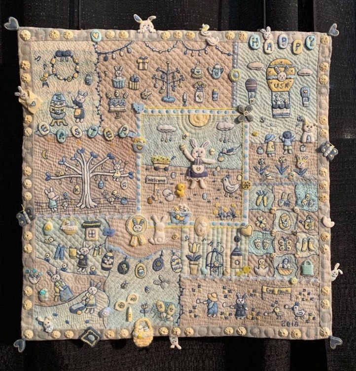 Happy Easter by Aki Sakai was on display as part of the Miniature Exhibit at the Houston International Quilt Festival 2018.