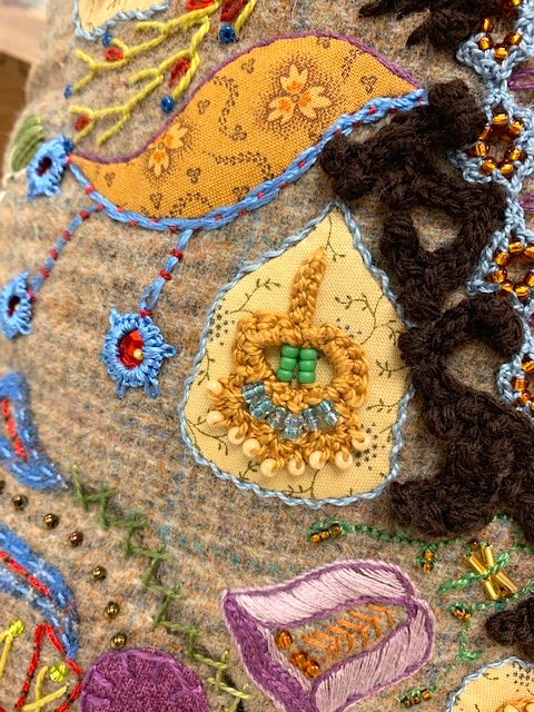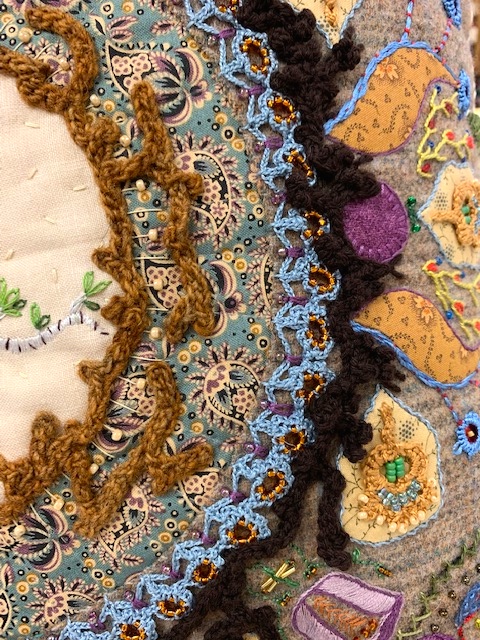 The workmanship was exquisite! Even though we were there for some cross stitch instruction, everyone had to take a moment to enjoy the beauty. When I asked her where she learned the techniques...she said from Ann Myhre on The Quilt Show! Yep, in the Quilting/Stitching world the game 6 Degrees of Separation might only be 3 degrees of Separation!!
