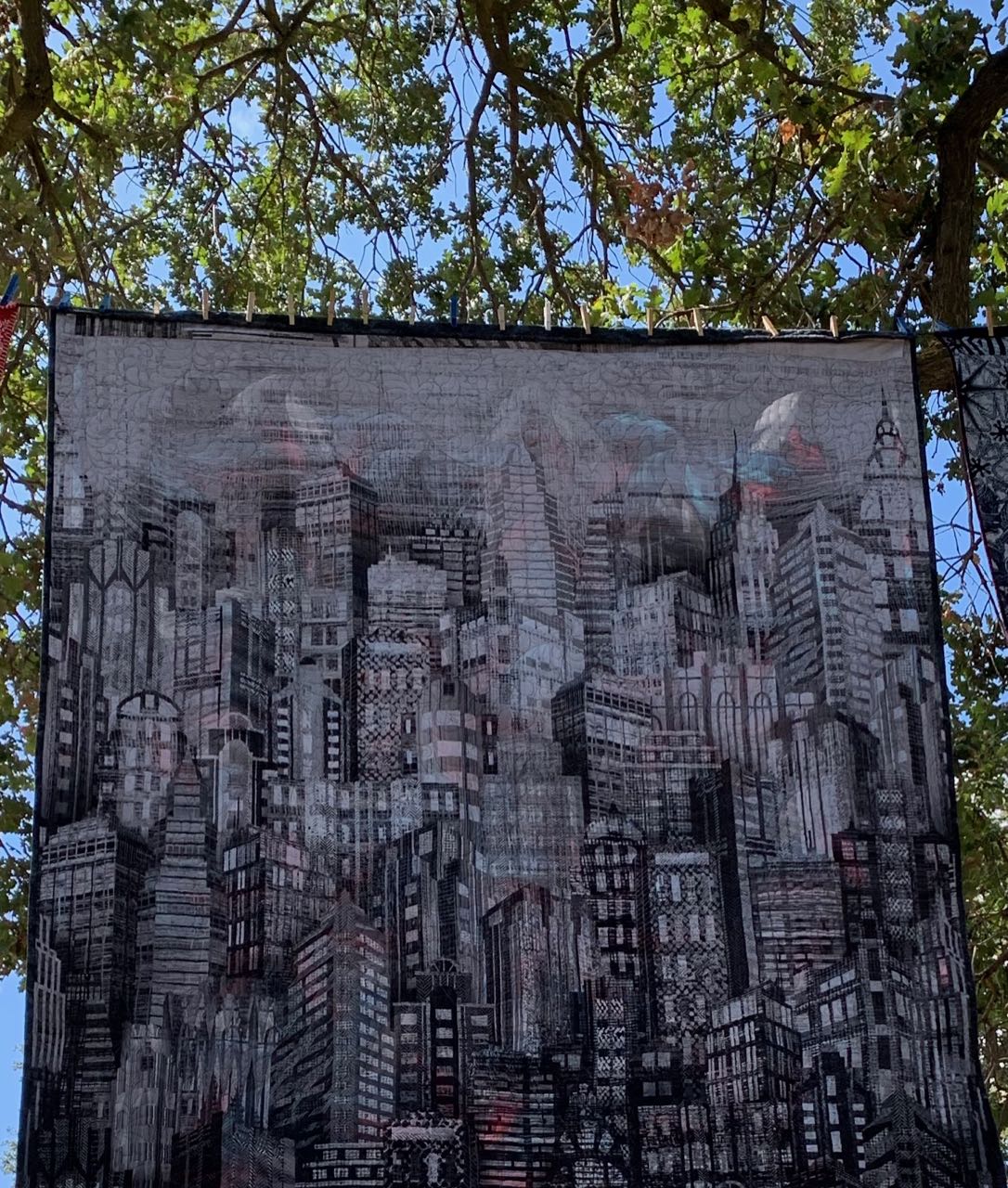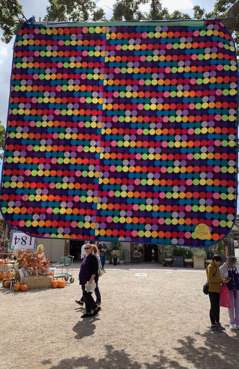 One of the fun things about hanging quilts in the trees is that you see the backs of the quilts. Below are 4 (not 3) pictures. Can you tell which are backs and which are fronts? For the answer and the other side of the quilts, click here.