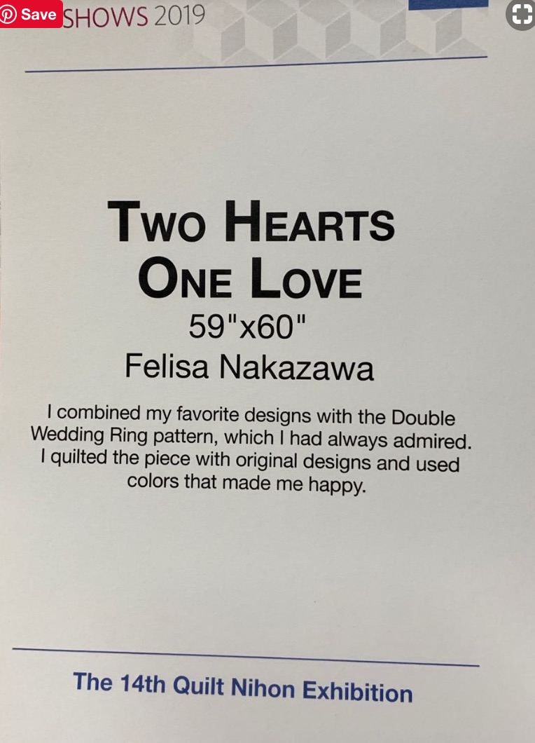 "Organized by the Japan Handicraft Instructors' Association, the Quilt Nihon Exhibition is one of the most prestigious international quilt contests in Japan. The exhibit features 42 quilts from the "Innovative Traditional" category, which will later be exhibited at the Tokyo Metropolitan Museum of Art."