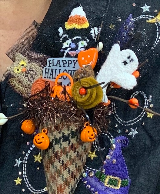 One of the contests was a Halloween Brooch created by the participants. The brooches were laid out on the table and everyone voted for their favorite. The creativity of the Woolstock Stitchers made it extremely difficult to choose a favorite. I thought I would share the top 3 winners!