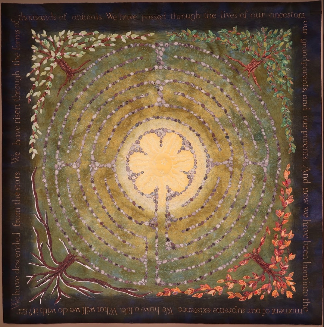Descended from the Stars is atypical for Sarah Ann. It is a labyrinth quilt and draws in the viewer to have them reflect on their life's journey.