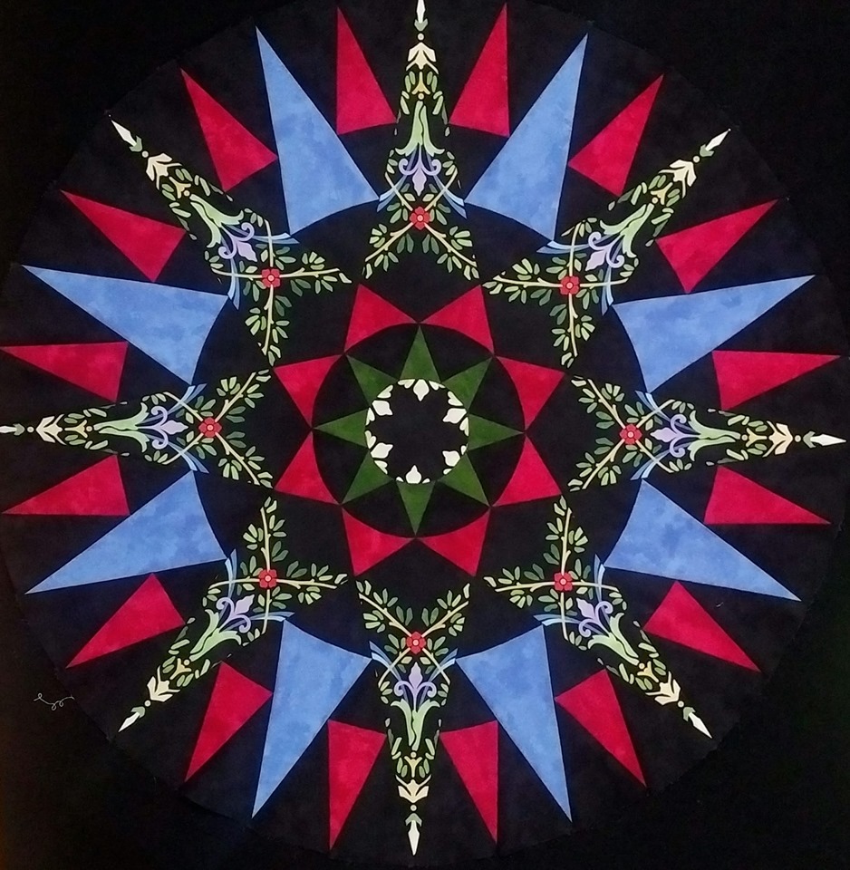 We told you that Kathy K. Wylie recently won Best of Show at the Pacific International Quilt Festival 2019 and we recently checked up on her Facebook page and saw she was working on this fussy cut Mariner's Compass. We can't wait to see where this is going.