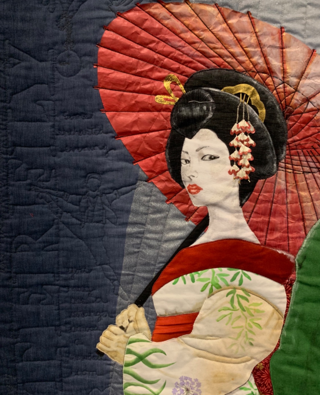 Look closely at the quilting, you'll see she's put in words and figures from various shows.