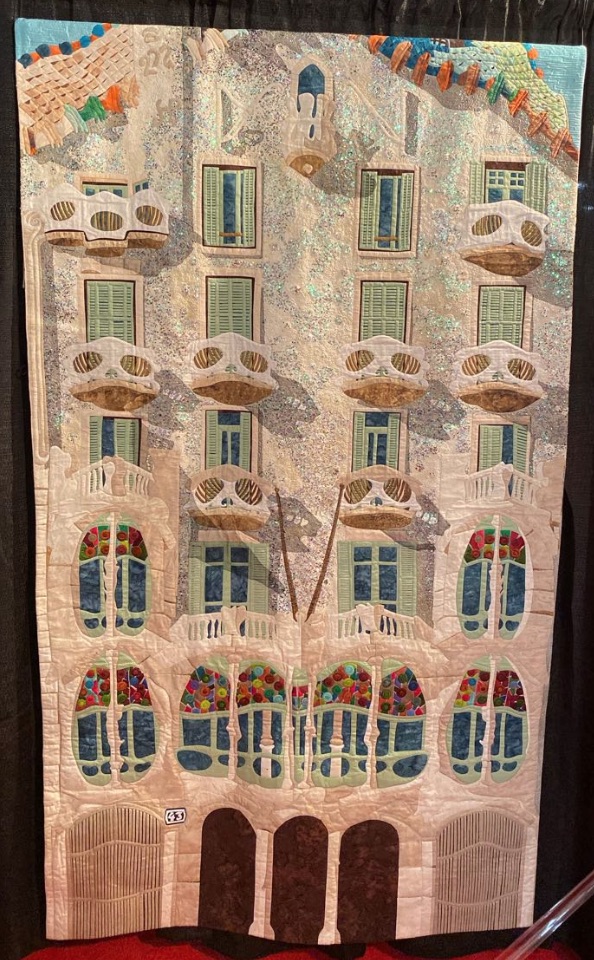 Olga Gonzalez-Angulo created an appliqué masterpiece based on one of Antoni Gaudi's amazing architectural designs. Every little detail has been meticulously recreated. It is a showstopper. And, since we know Olga is very good friends with Rosa Rojas, we have a sneaking suspicion this quilt just might have been created with Apliquick tools.