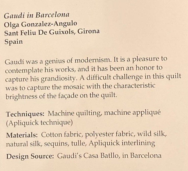 Drink in all the details of Gaudi in Barcelona. It was on display at the Houston International Quilt Festival 2019.
