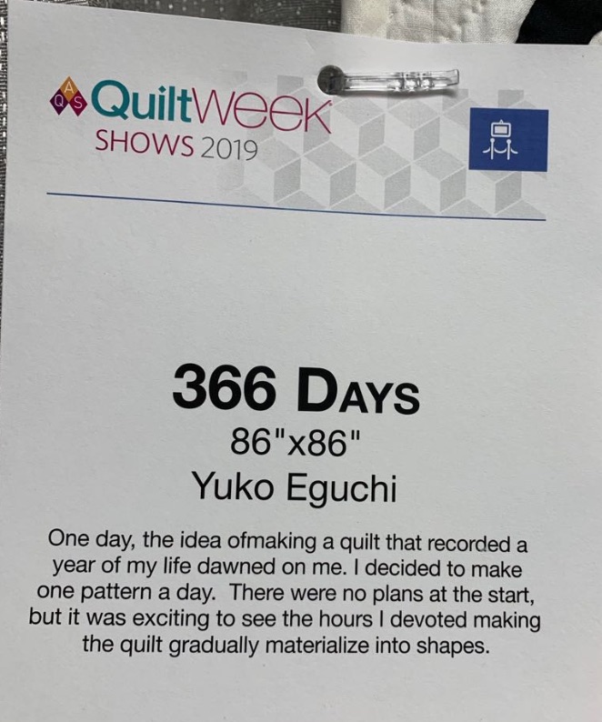 "Organized by the Japan Handicraft Instructors' Association, the Quilt Nihon Exhibition is one of the most prestigious international quilt contests in Japan. The exhibit features 42 quilts from the "Innovative Traditional" category, which will later be exhibited at the Tokyo Metropolitan Museum of Art."