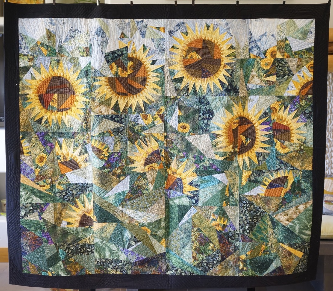 Jean Wells' garden is full of sunflowers and so is this beautiful quilt, Sunflowers, created with New York Beauty blocks in a not quite "traditional" manner.