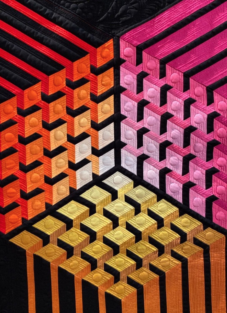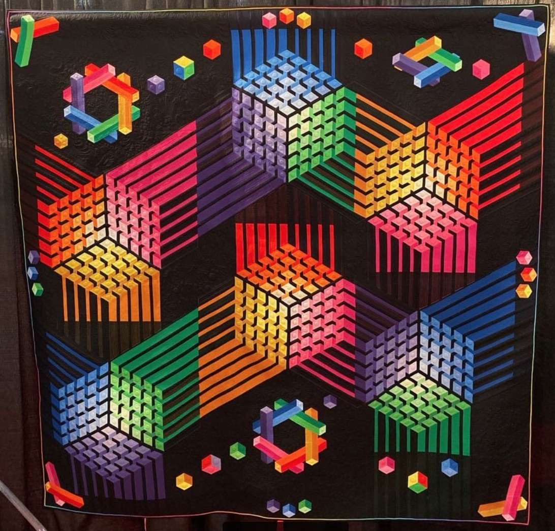 This quilt required knowledge of perspective, geometry, color theory, and quilting, and Beth Nufer seems to have nailed them all in her stunning quilt, Cody's Cubes. Beth said it was fun "and challenging" to make. We'd have to agree.