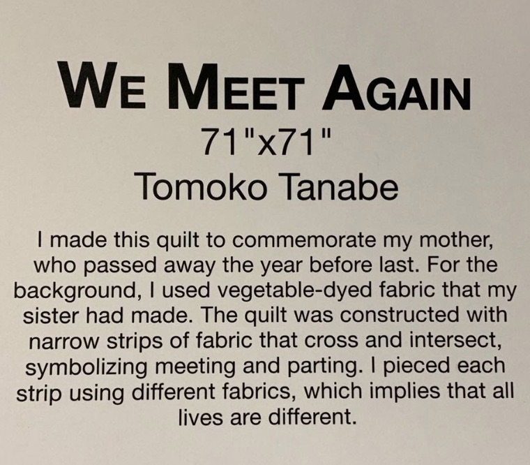 "Organized by the Japan Handicraft Instructors' Association, the Quilt Nihon Exhibition is one of the most prestigious international quilt contests in Japan. The exhibit features 42 quilts from the "Innovative Traditional" category, which will later be exhibited at the Tokyo Metropolitan Museum of Art."