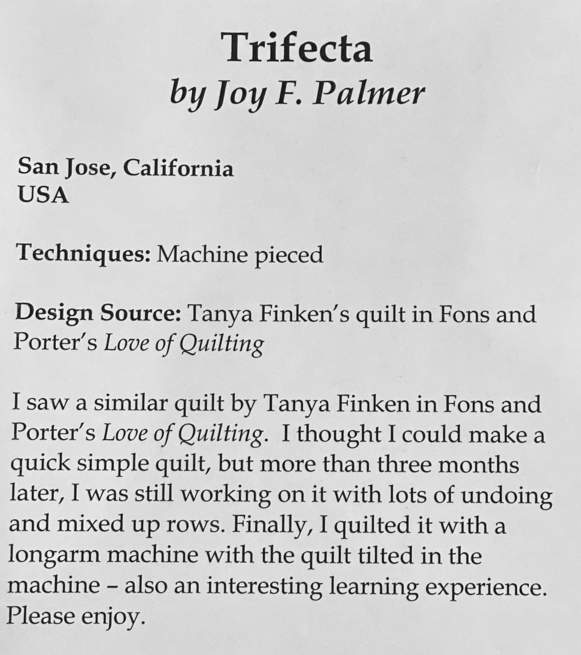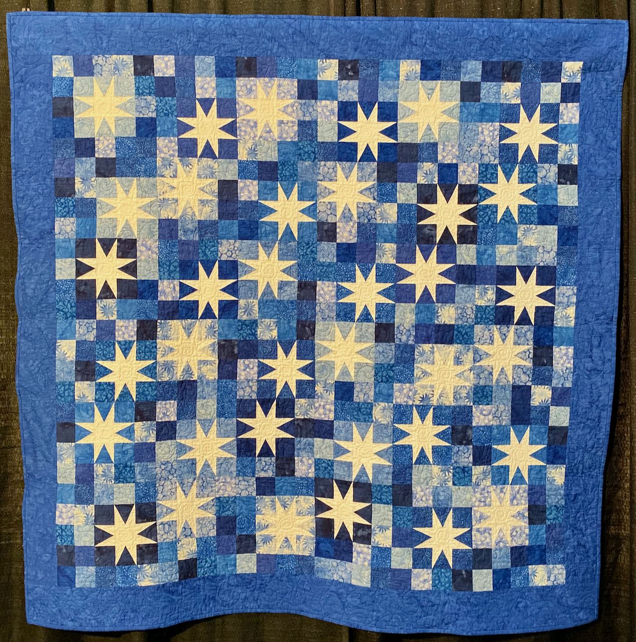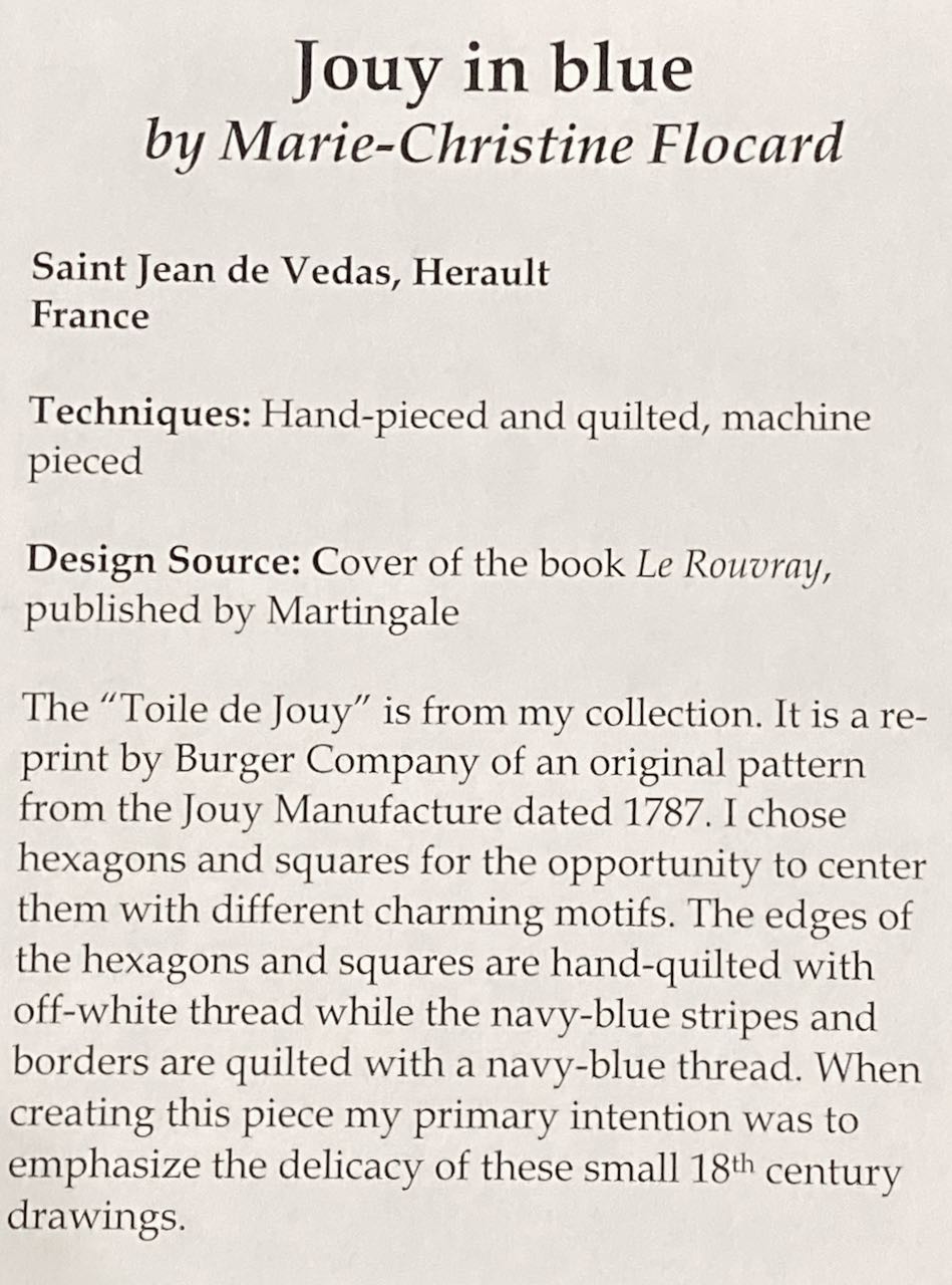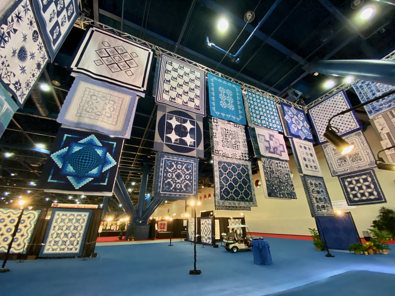 It was wonderful to come into the quilt section in Houston and be surrounded by blue quilts. Quilts in the air, quilts in miniature, and quilts you could walk up to. There were quilts from around the world and by men and women. Here is a sample of the experience: