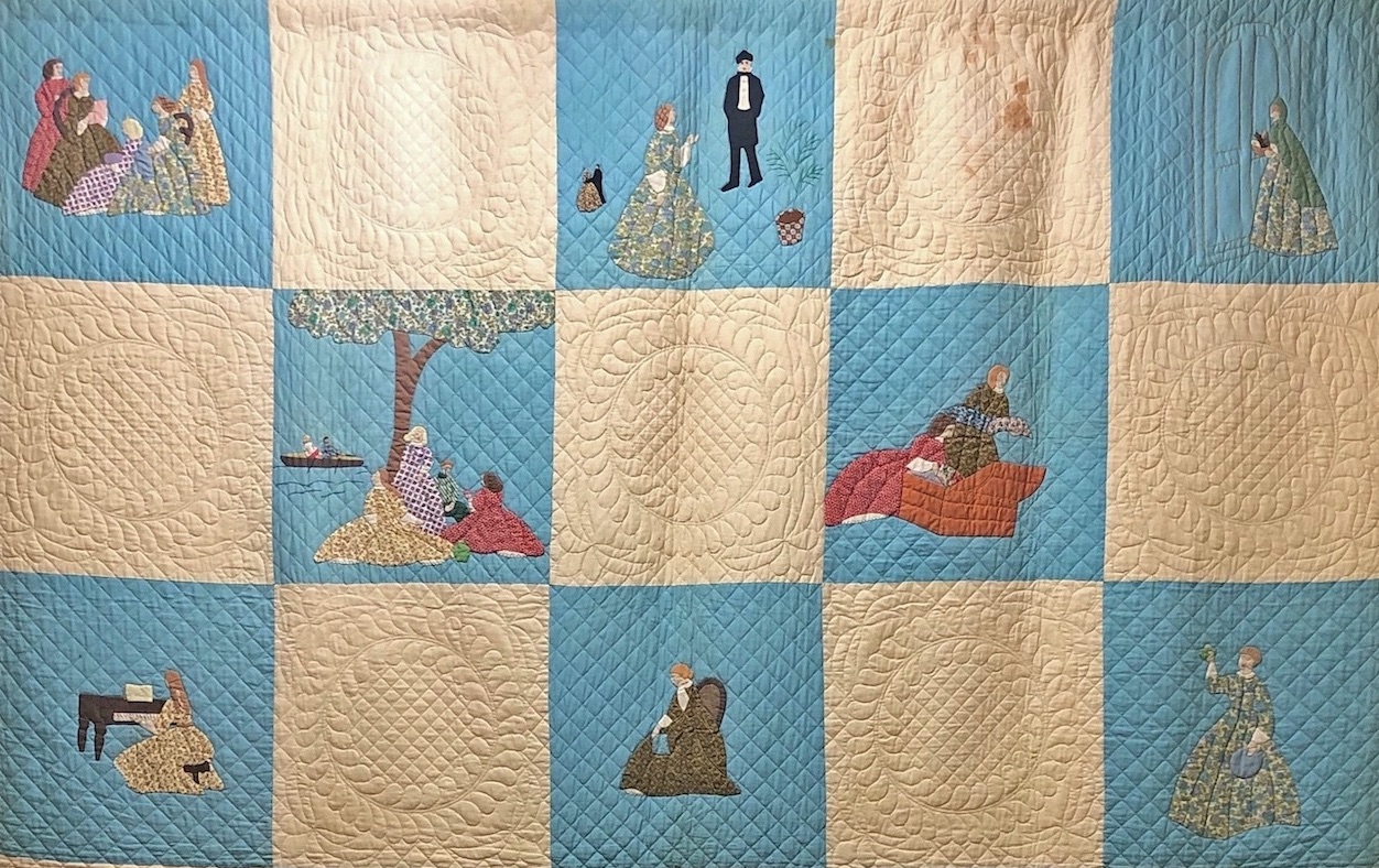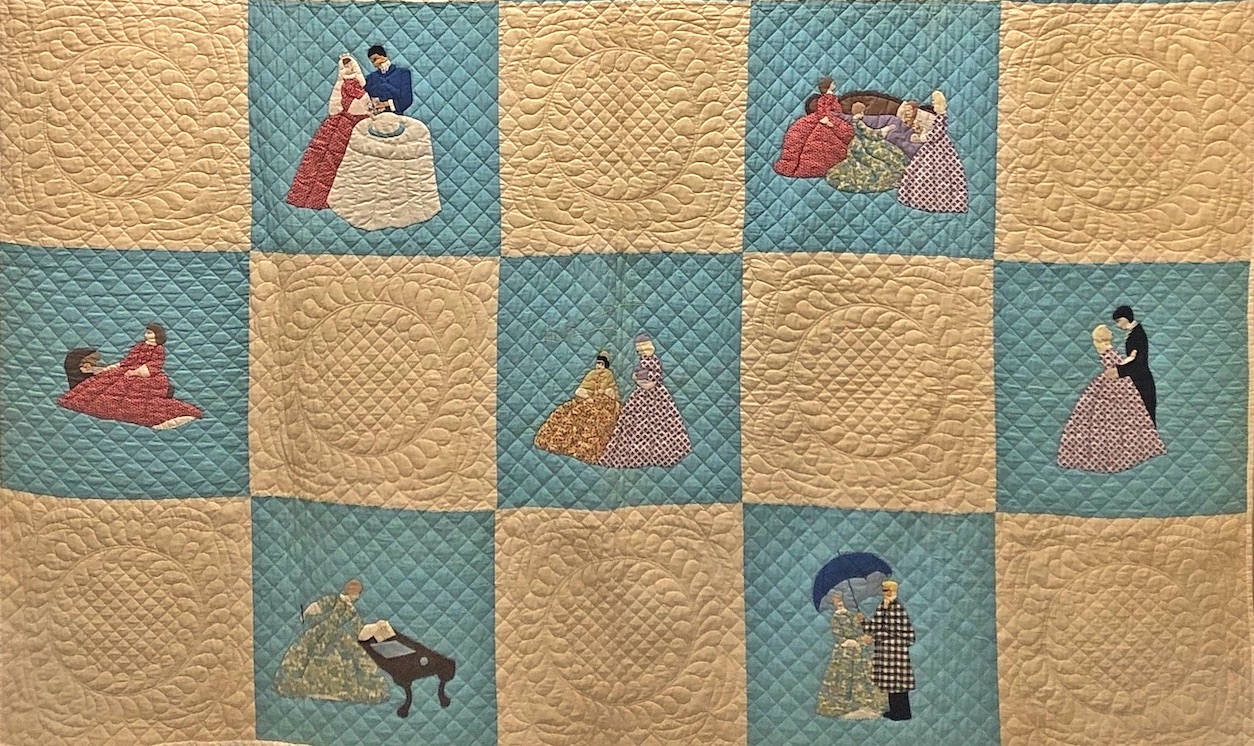 The Museum of Texas Tech University recently received two lovely quilts made by Ruth N. Miller Hake (Mrs. William) of York Haven, Pennsylvania. Her granddaughter, Bobbie Robbins, lives in Texas and thought they would make a good addition to the Museum of Texas Tech University. One in particular is timely with the release of the movie Little Women as it features appliqued scenes from the novel.