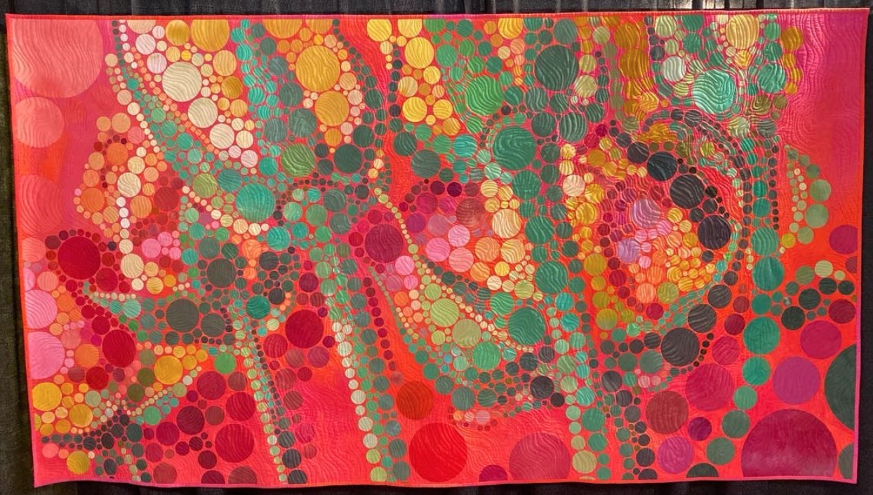 You'll need to take a step back to get a "closer" look at Carol Morrissey's quilt, Six Roses. It's another in her series of quilts created using circles. The further away you get, the more in focus the quilt becomes.