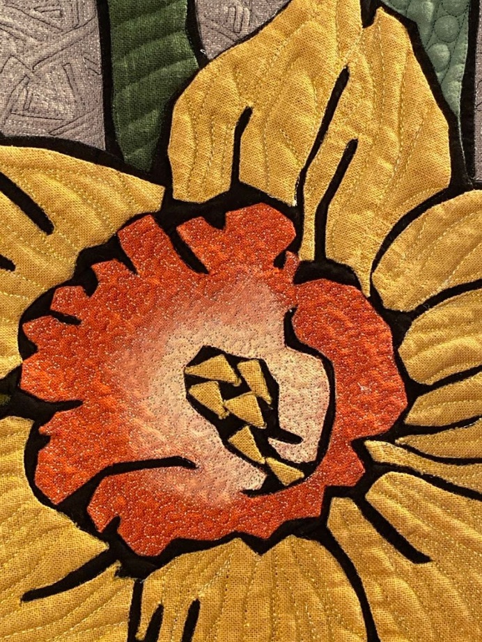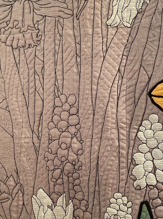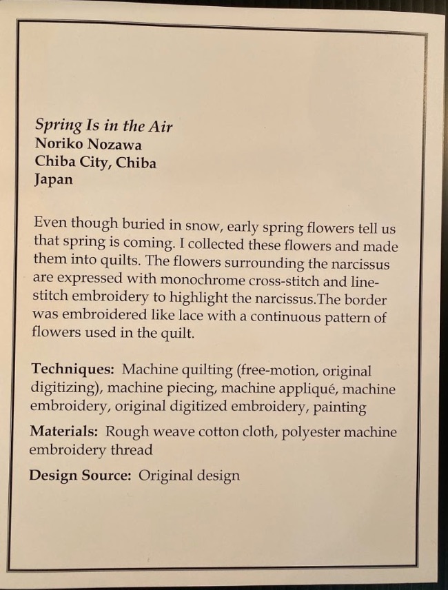 Spring Is in the Air won First Place, Alternative Techniques, sponsored by Madeira Thread, at the Houston International Quilt Festival 2019.