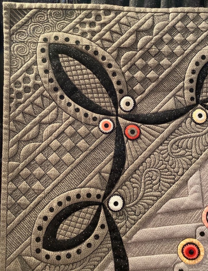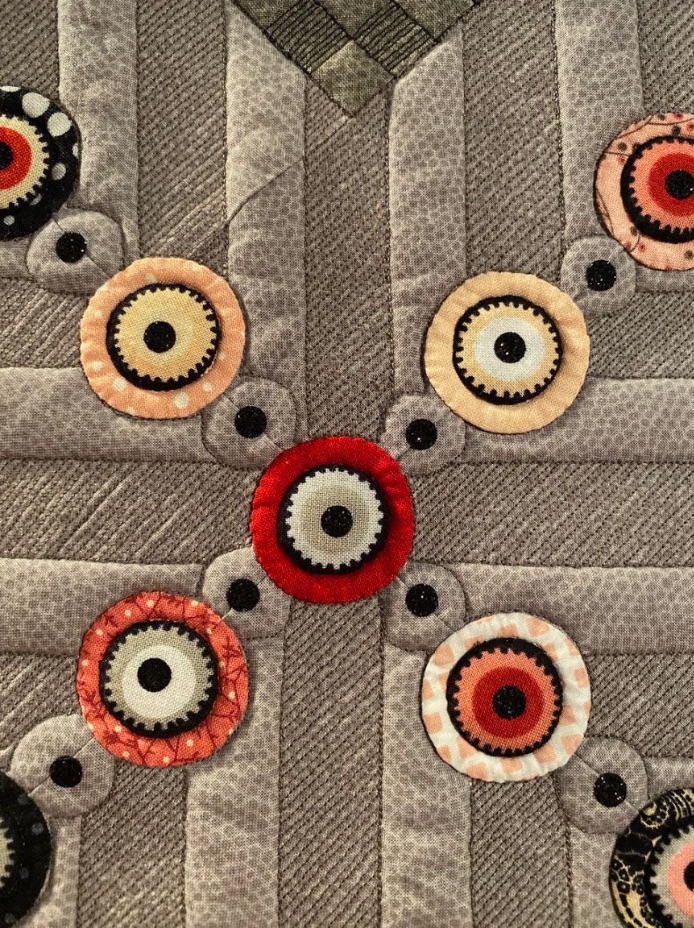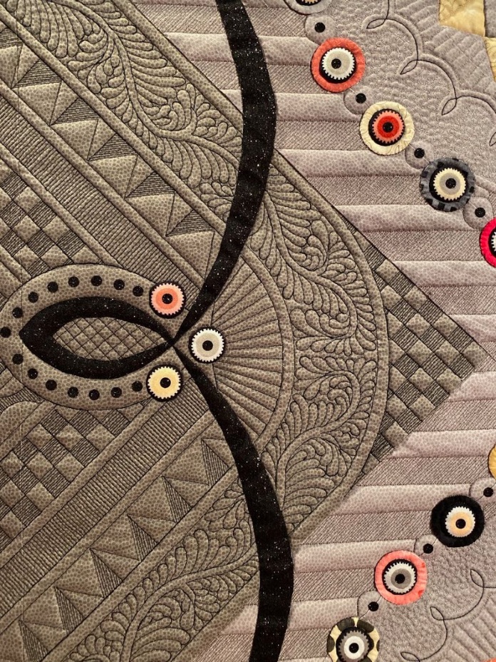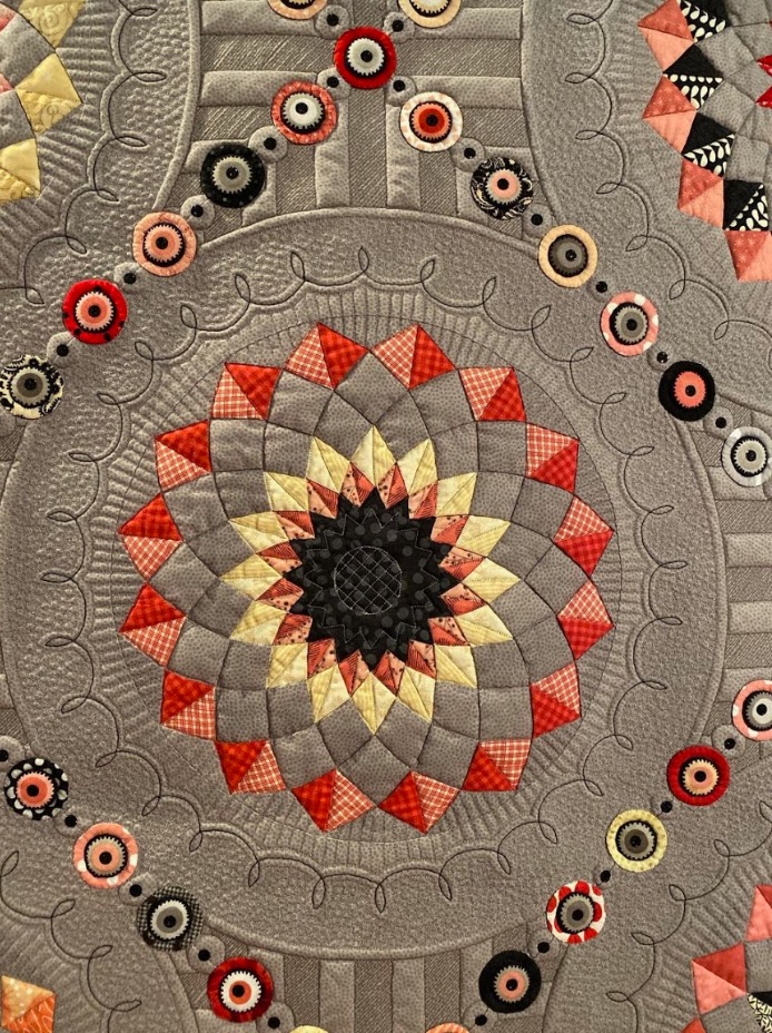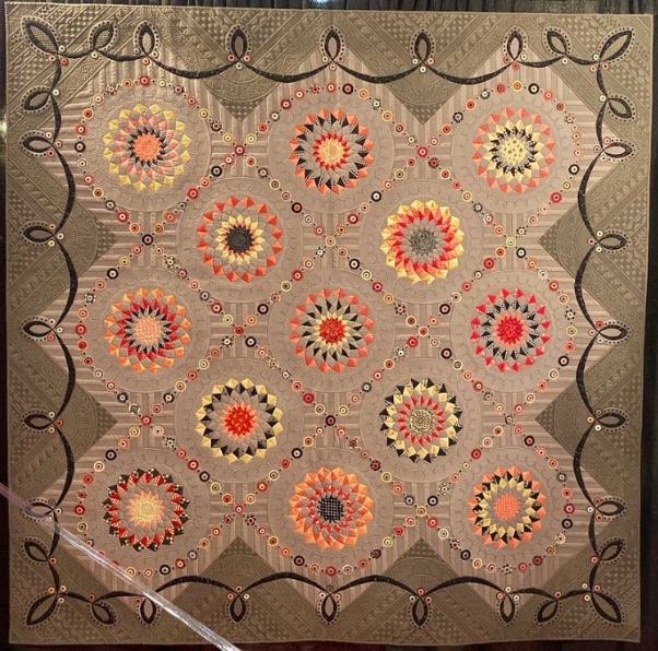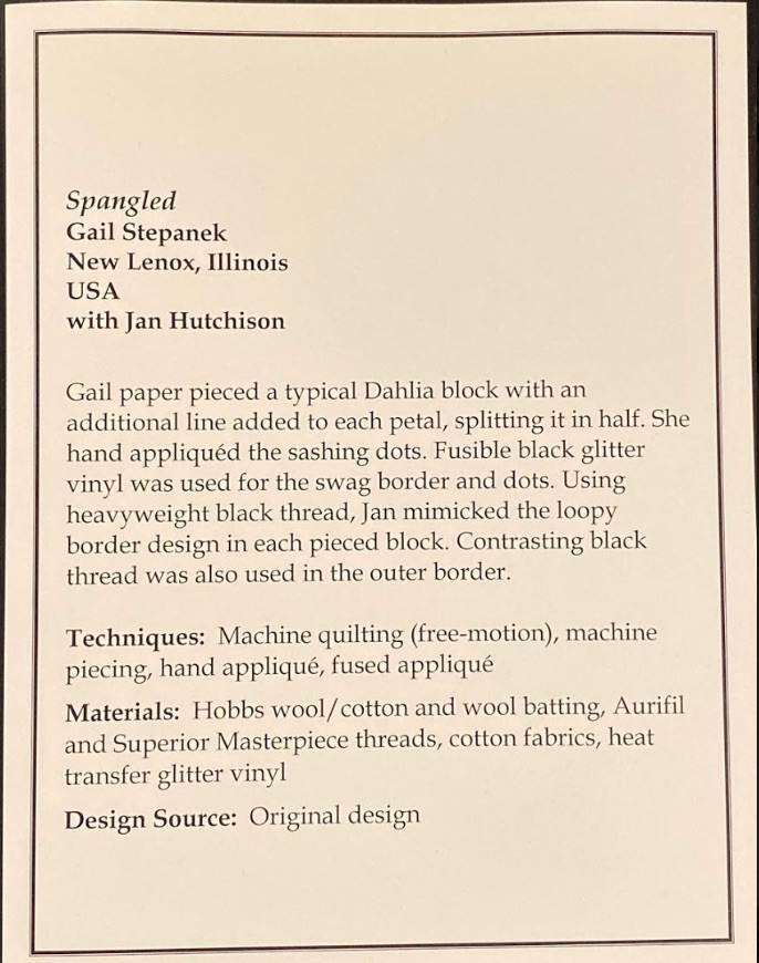 Masterpiece Award winners Gail Stepanek and Jan Hutchison added another 1st place ribbon to their collection with Spangled. This stunning quilt won First Place, Balanced Piecing and Appliqué at the Houston International Quilt Festival 2019.