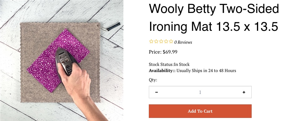 We have always loved Steady Betty ironing mats that keep your fabrics secure and flat while ironing. Now they have combined their knowledge of mats with the newest craze of wooly mats. We finally got our ration, as these are homemade and wonderful. Don't delay in making an order and here is a great way to use your 25% coupon for purchasing a 1 yr membership.