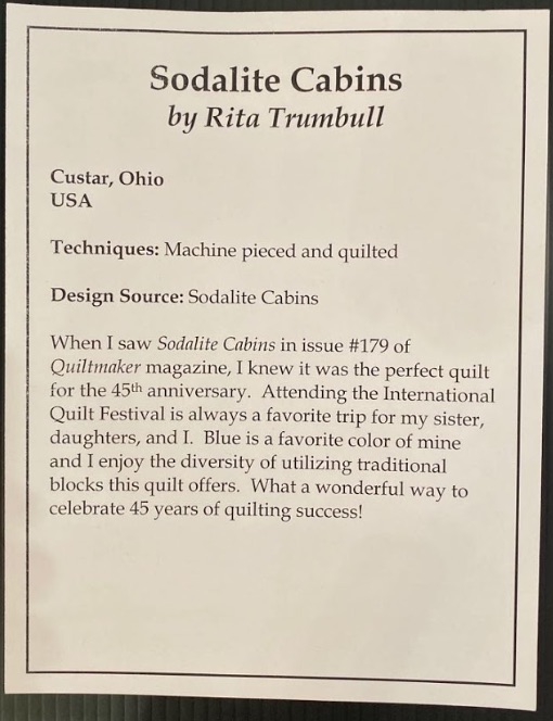 Title of Quilt: Sodalite Cabins
