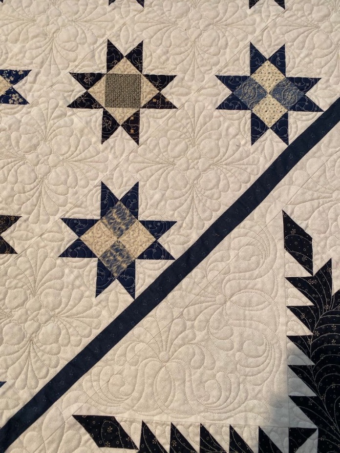 We continue our selection of quilts exhibited in 2019 at the Houston International Quilt Festival as part of their 45th Anniversary, the Sapphire Anniversary. The Sapphire Celebration exhibit is described as: