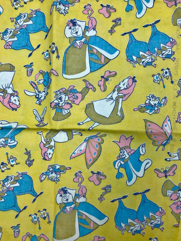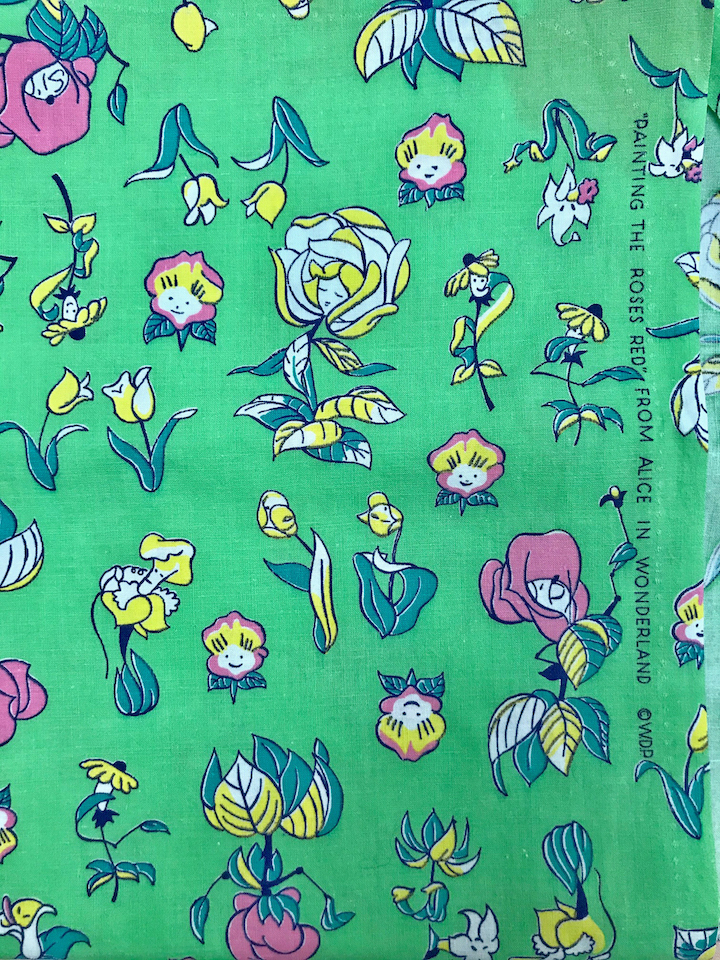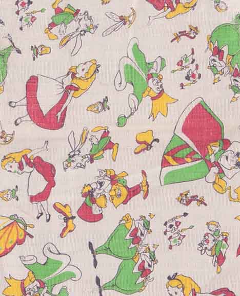 The Alice in Wonderland fabrics were definitely available in Texas and Oklahoma because the Merit company ran an ad showing the prints. The Merit company had mills in Oklahoma City, Muskogee and Sayre, Oklahoma as well as Amarillo, Texas. The Alice in Wonderland prints also ran on Rodkey’s Best Flour bags.