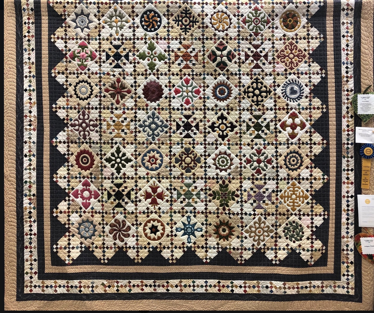 Have you been working on your TQS BOM Afternoon Delight quilt? Well, Sheralynn Humble of Bullard, TX created her own version, Afternoon Delight, Thanks Sue, and she just became a National Association of Certified Quilt Judges (NACQJ) Award of Merit ribbon winner!