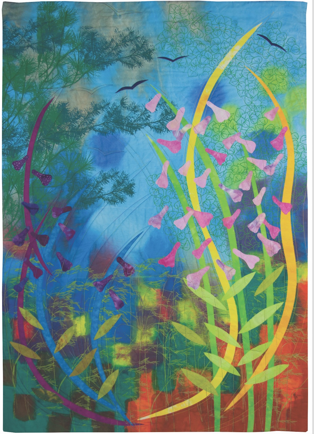 “The museum’s beautiful facilities and commitment to conservation complemented the work in this exhibition. Working with organizations like this helps to amplify this exhibition’s message of environmental conservation and brings art quilts to a new audience,” says Martha Sielman, SAQA’s executive director. “In these videos, the artists explain the stories behind their work, and the processes and techniques used to create them. We also go up close in a virtual tour of the exhibition to show the details, stitchwork, and textures contained in these works of art.”