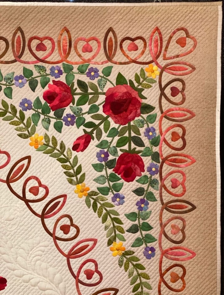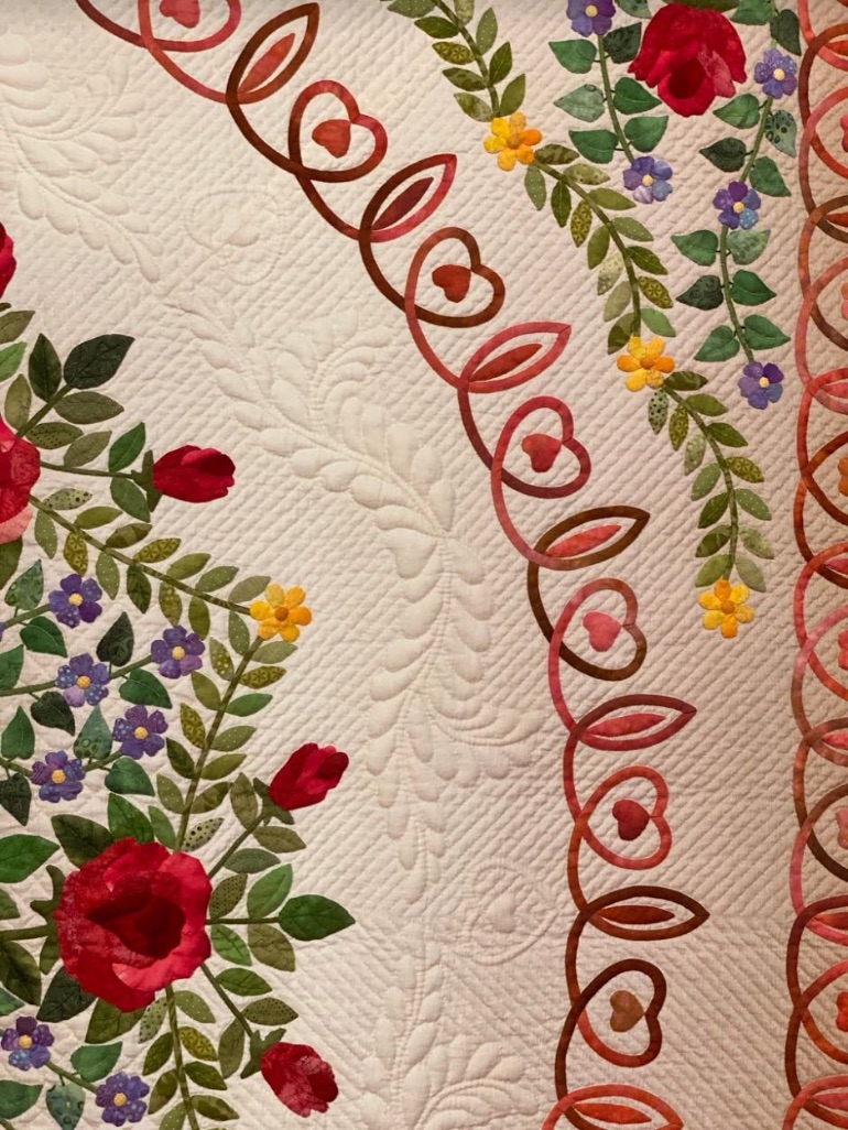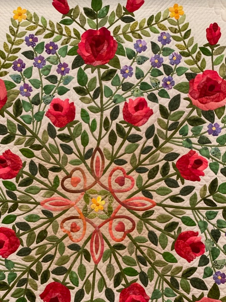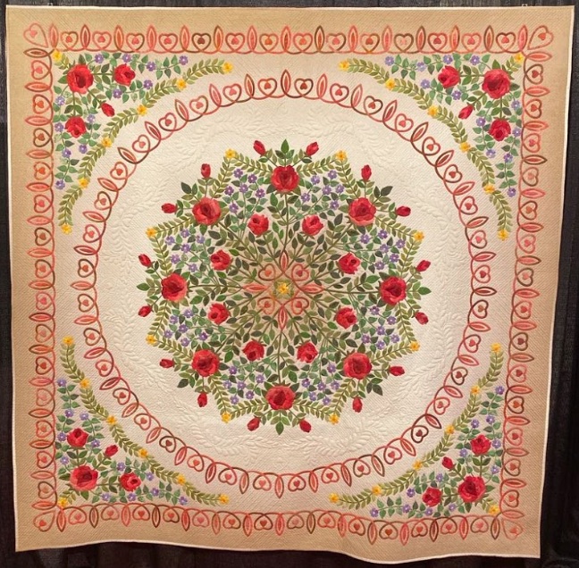 Gentle Flowers by Teruko Ono of Iwaki-City, Fukushima-ken, Japan won Second Place, Handmade, sponsored by Martingale & Company, at the Houston International Quilt Festival 2019.