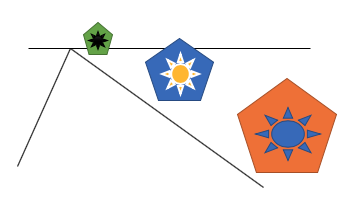 Size - If you place three different size Hexies in a line (from large to small), the smaller Hexies will appear further away.